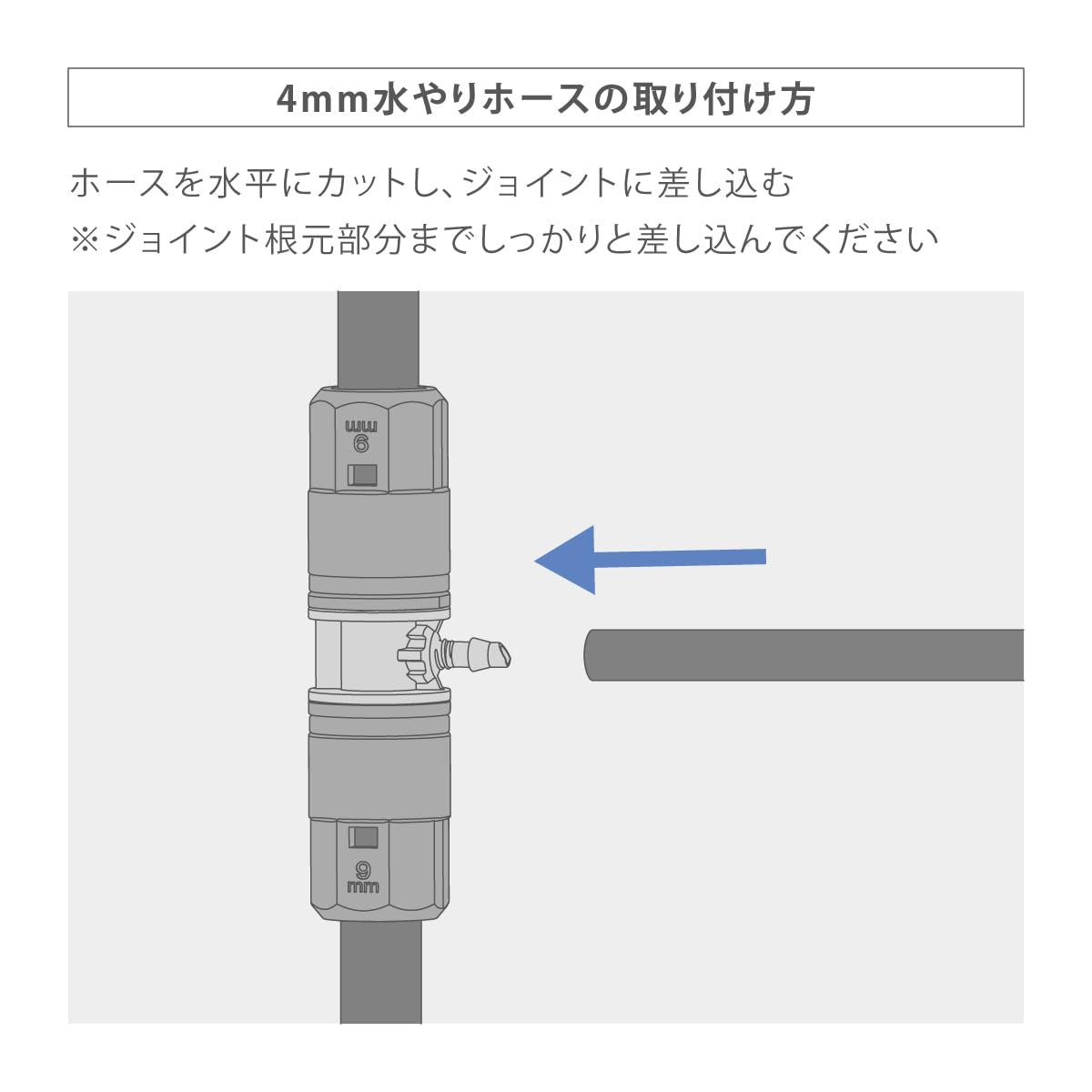 9mm水やりホースから4mm水やりホースを接続する時にお使いいただけるアイテムです。