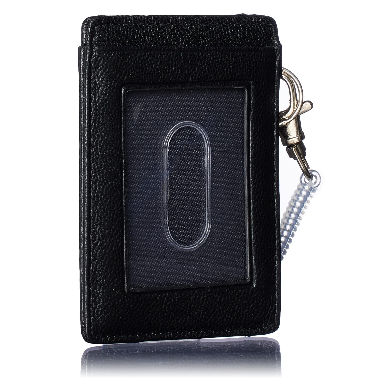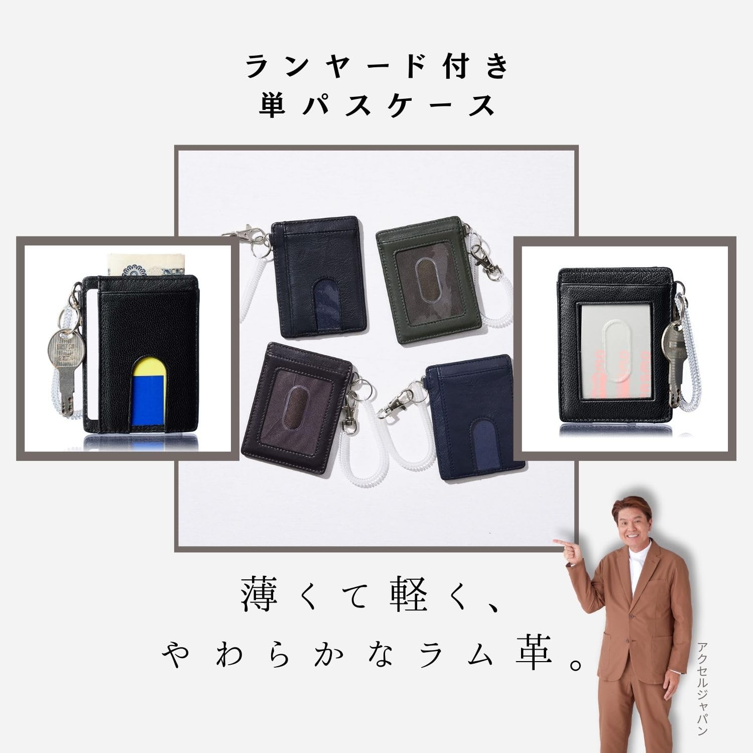[Pregiudizio] メンズ 軽くて薄い イタリア製 ラム革 単パスケース 定期入れ ランヤード付き (Black N)