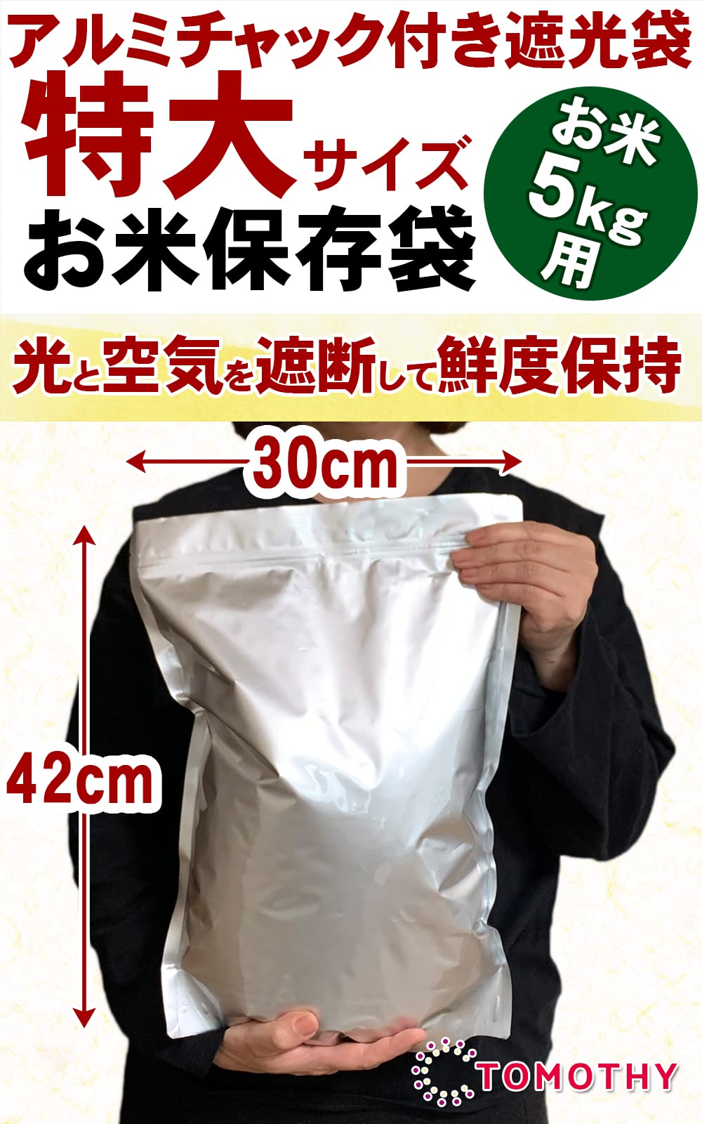 TOMOTHY 米 保存袋 5kg5枚 お米 保存容器 米袋 食品保存容器 アルミ袋 特大 チャック付き 食品衛生法適合品 遮光袋 30×42cm 5枚
