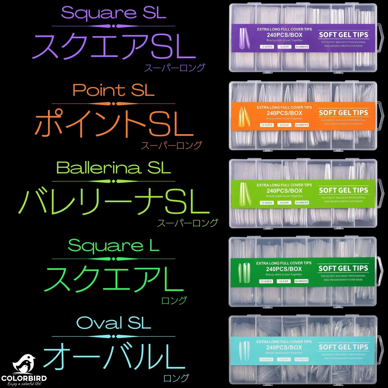 COLORBIRD ネイルチップ ロング スーパーロング 240枚 超鬼ロング クリア ギャルネイル 付け爪 (バレリーナSL)