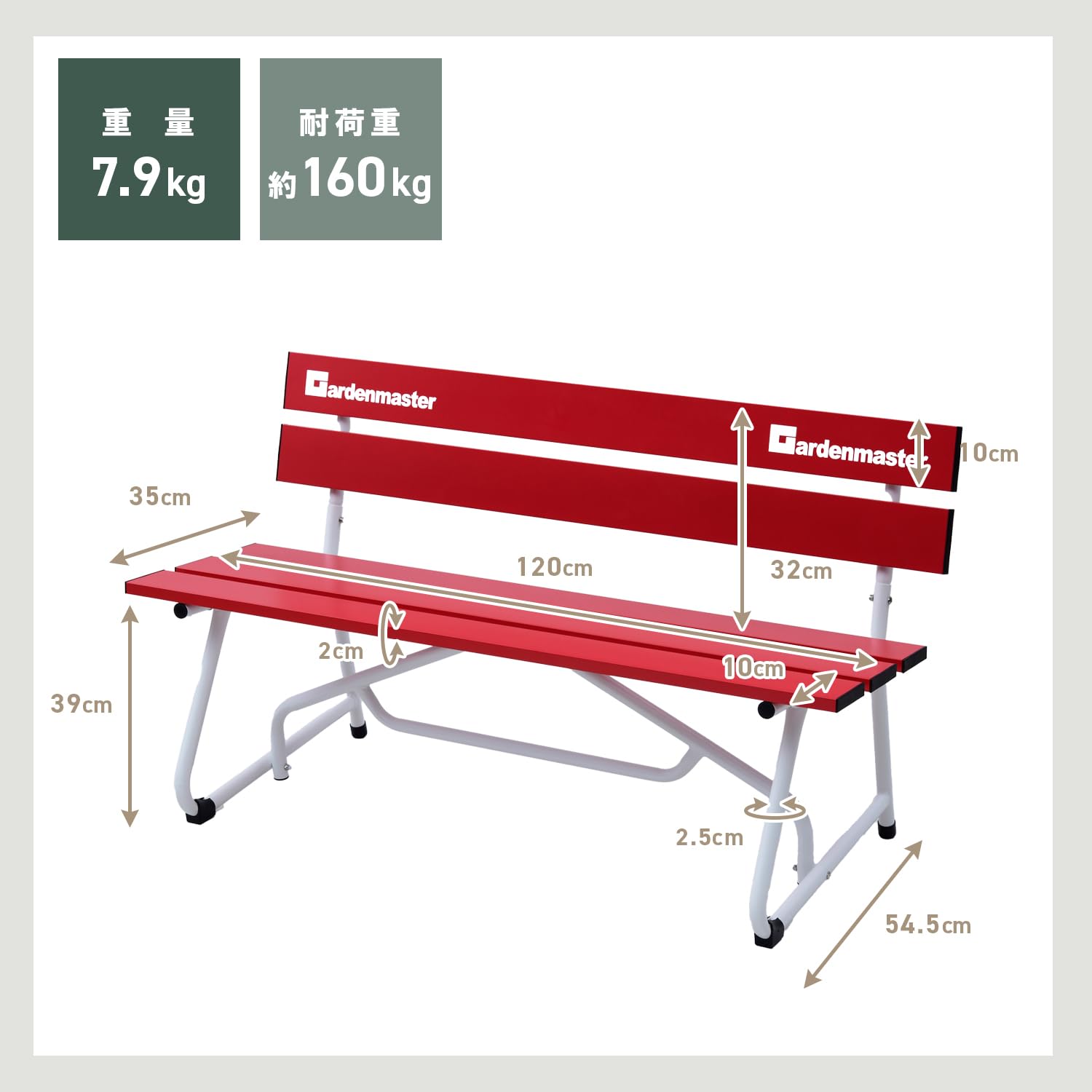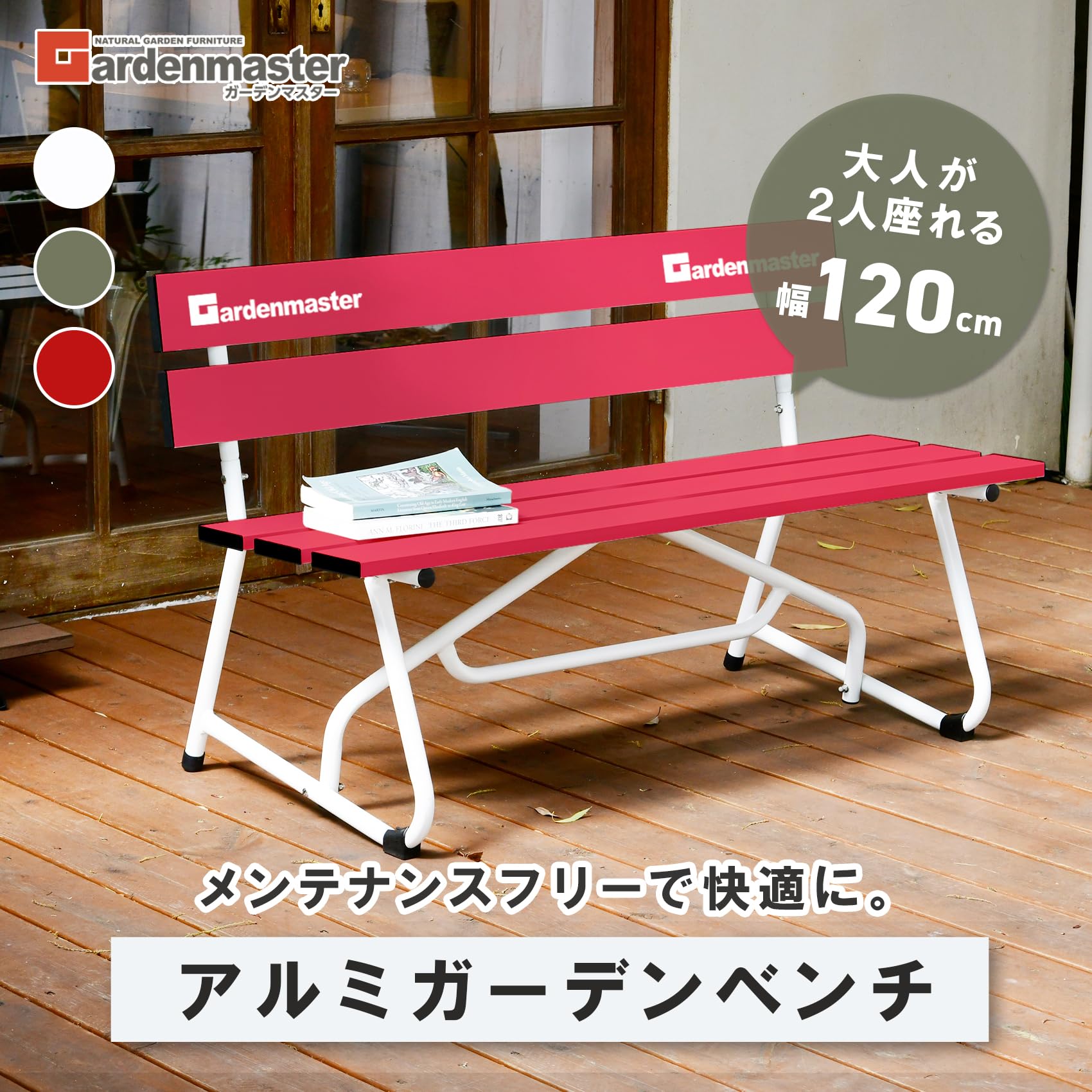 ガーデンマスター(Gardenmaster) アルミガーデンベンチ (幅120×奥行53.5×高さ69.5cm) お庭 ベランダ テラス バルコニー 休憩所 喫煙所 レッド KAB-1205GM