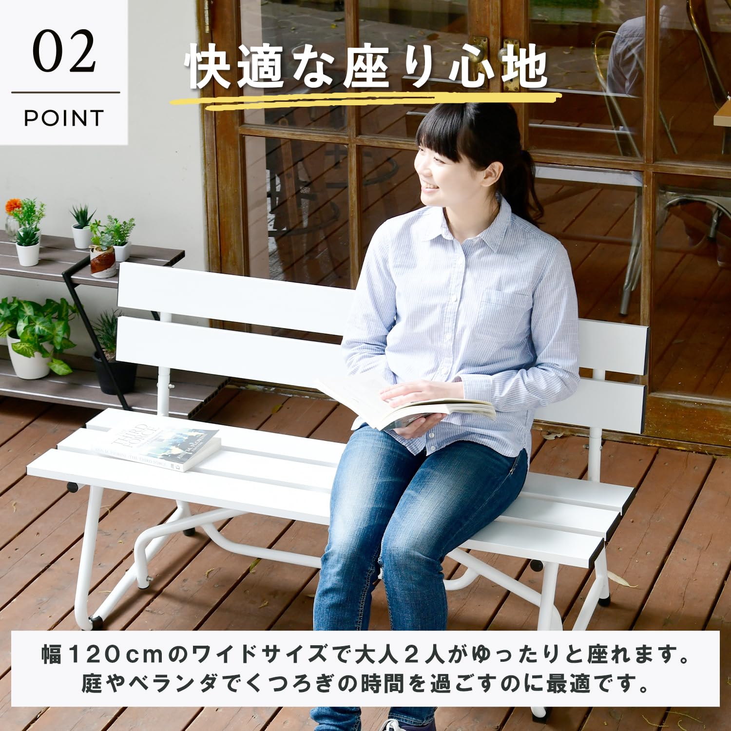【特徴】おしゃれでお手入れが簡単なアルミ製ガーデンベンチです。雨風に強いアルミ製で錆びにくく、耐久性に優れています。汚れもサッと拭き取れるので、お手入れも簡単です。シンプルなデザインでベランダやバルコニー・お庭など場所を選ばず設置できます。大人2人がゆったり座れるサイズで、休憩所などのベンチとしても最適です。シンプルで耐久性に優れているので、お家だけでなくテニスコートや休憩スペースなどの様々なシーンでも活躍します。