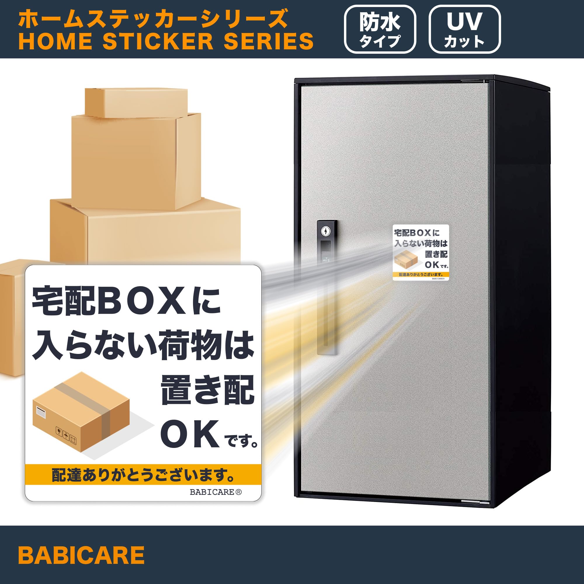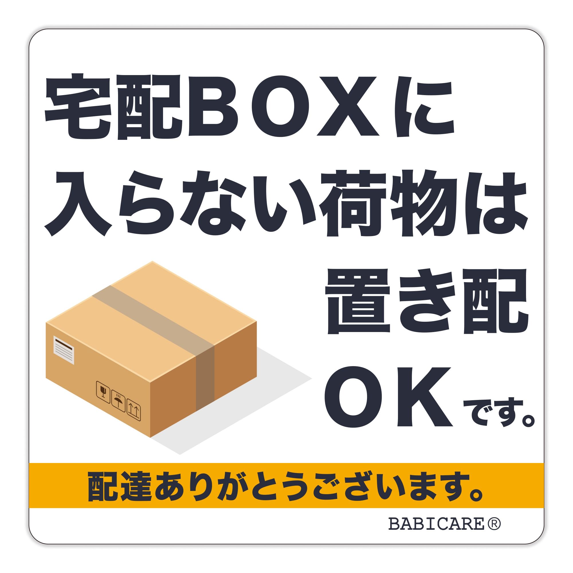 【BABICARE】日本製 宅配BOXに 入らない荷物は置き配 OKです ステッカー PET製 光沢/高耐候/防水/耐光/UVカット 80X80mm (ホワイト)