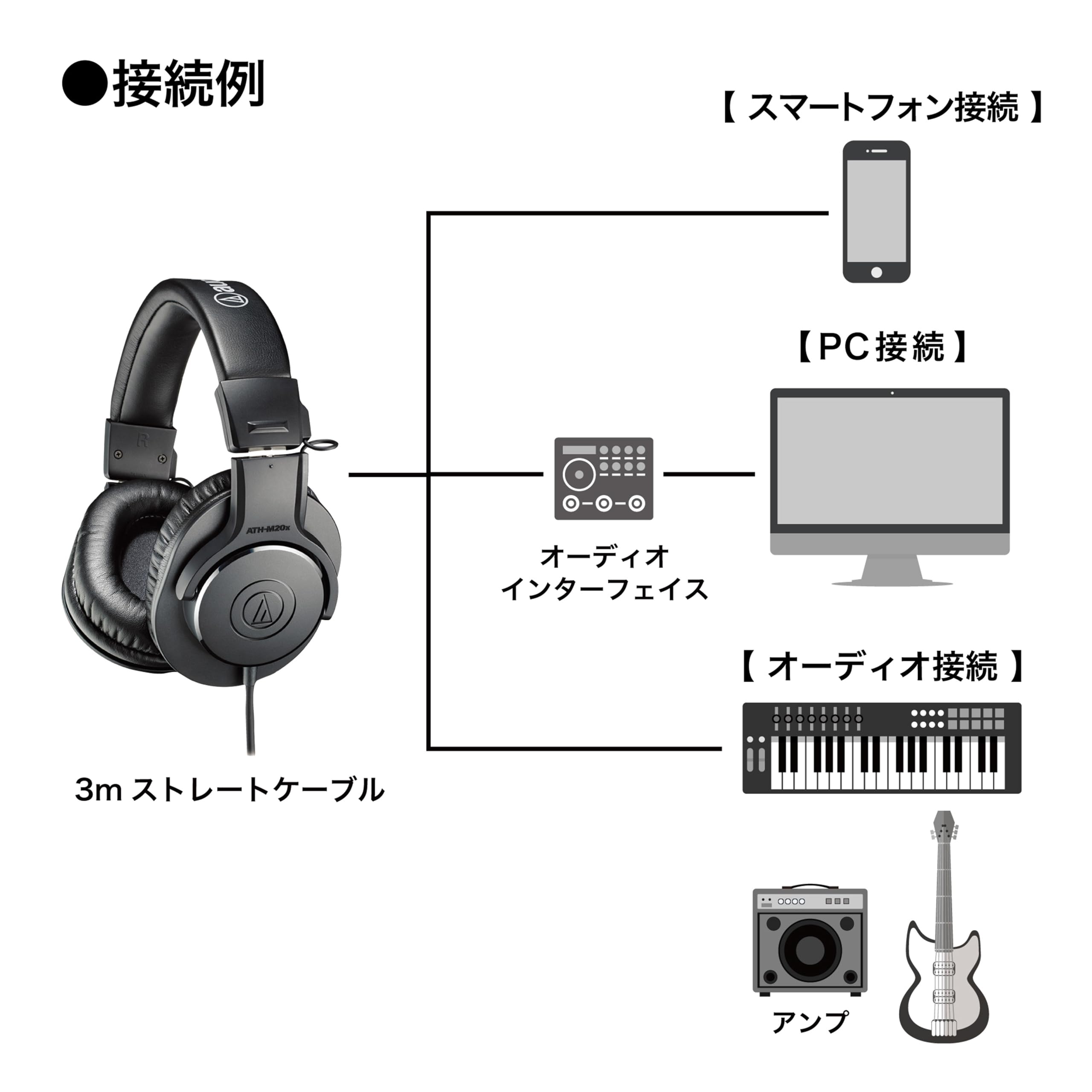 オーディオテクニカ ATH-M20xプロフェッショナルモニターヘッドホン 有線 スタジオレコーディング/楽器練習/ミキシング/DJ/ゲーム/モニターヘッドフォン/有線 【国内正規品】ブラック