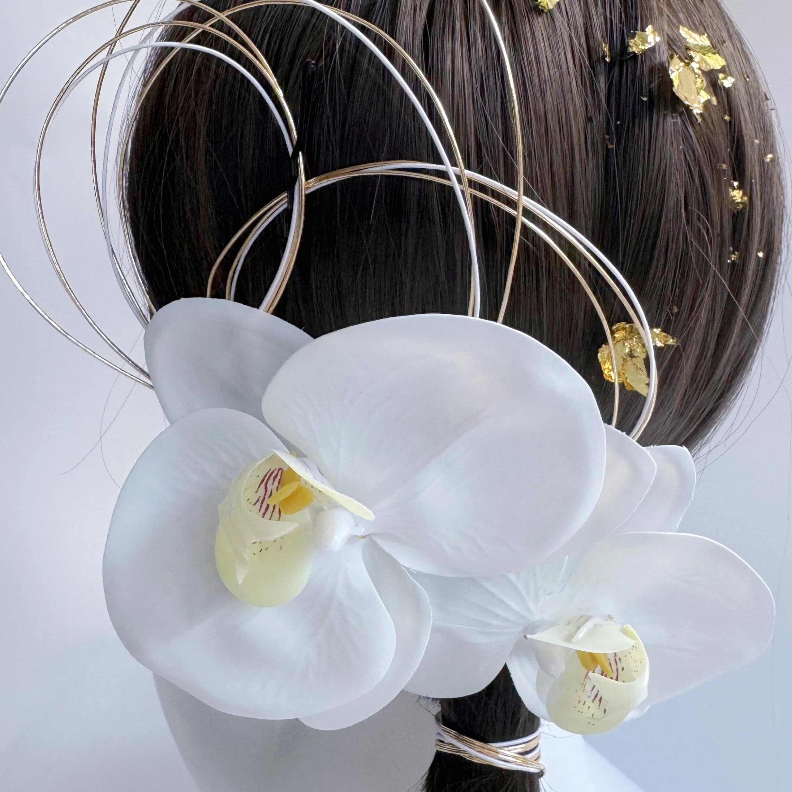 胡蝶蘭 髪飾り 和装 成人式 ボブ 浴衣 振袖 編みおろし ヘアアクセサリー 結婚式 袴 着物 髪留め 成人 式 白 シロ ホワイト 造花 金箔ヘア用 水引き 振り袖 フルセット 胡蝶蘭髪飾り[lalabeauty]