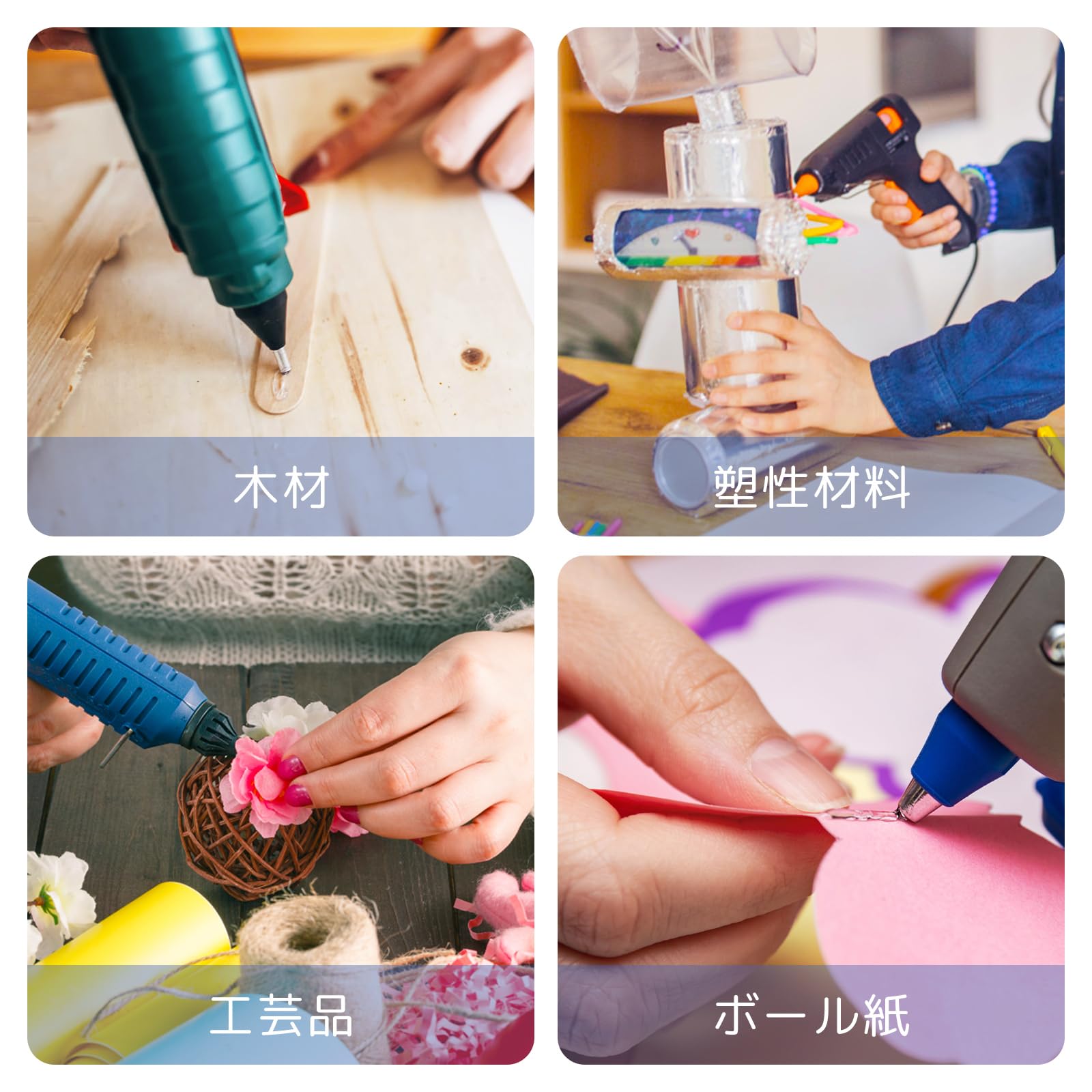 ✿幅広い適用性:手作り工房、学校、家庭のDIY活動にオススメ。木材、紙、段ボール、金属、テキスタイル、コルク、ガラス、各種プラスチックの接着や固定など最適しています。
