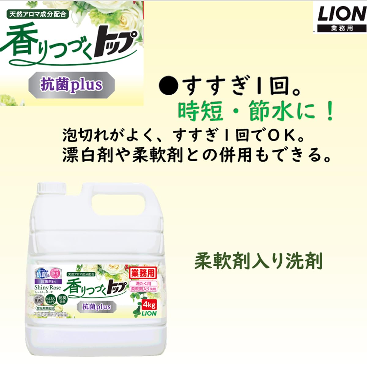 【業務用 大容量】 香りつづくトップ 抗菌 plus 4㎏ 洗濯洗剤 詰め替え 液体 洗剤 ローズ & フローラルの香り