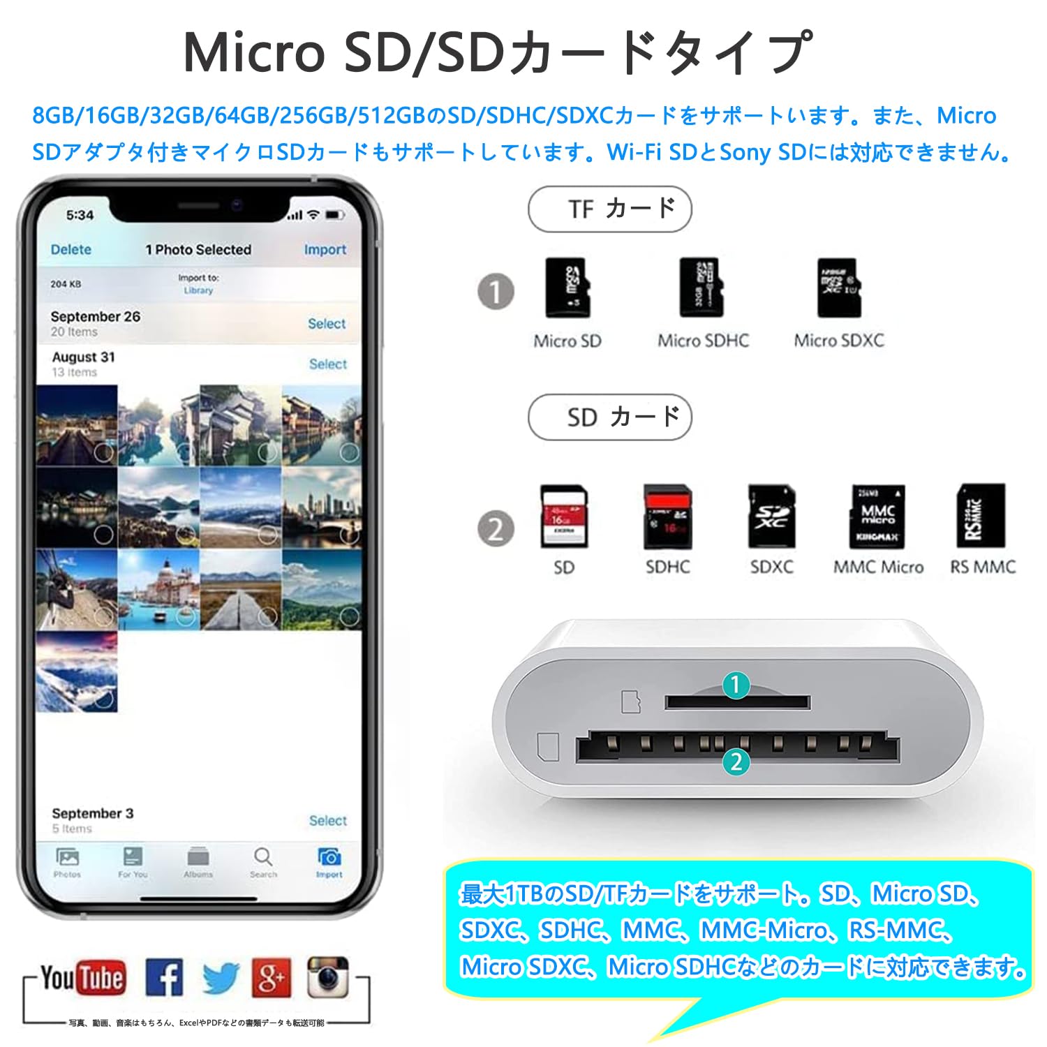 【高速・双方向転送】 14MB/S~16MB/Sの高輸送速度、短時間でSDカードから写真や動画をスマホに直接読み取りできます。従来のUSB2.0より約10倍速く、最大5Gbpsの高速データ転送ができるUSB3.0に対応し、数秒内でスマホの容量を圧迫している写真や動画や各種ファイルをSD/TFカードに移行させて、容量不足が解消できます。ご注意:①IOS 9.2-12.4バージョンのデバイスはTF/SDカードからスマホ(iOS8.0以上)に送信のみ転送可能②IOS 13以降のデバイスは双方向転送可能。写真とビデオだけでなく、Word、Excel、PDF等も転送可能です、最大1TBのSD/TFカードをサポート。