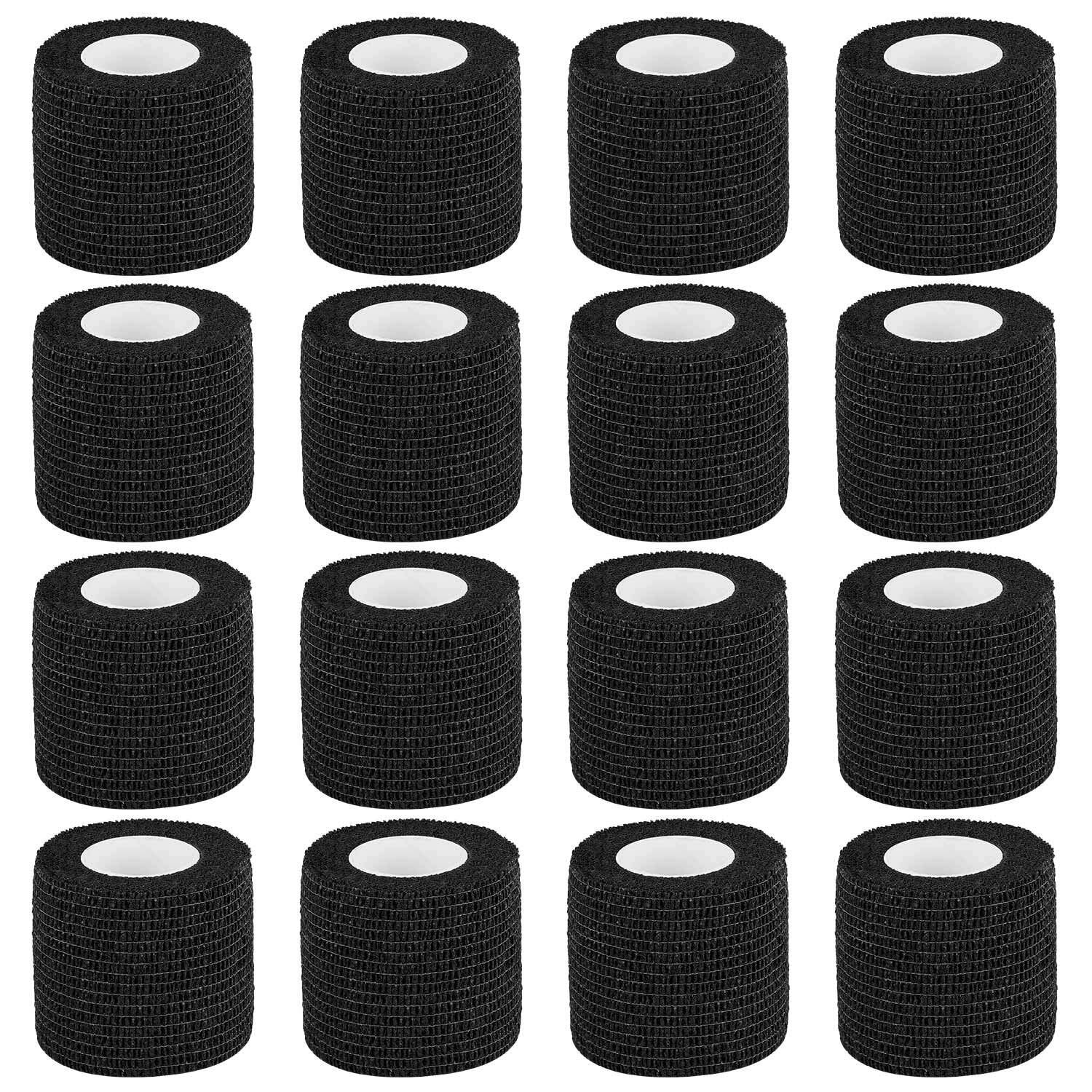 テーピング 自着性 不織布 エラスチックバンデージ 筋肉・関節サポート 弾性包帯 伸縮性 通気性 厚手タイプ (黒 16卷入 5cm)