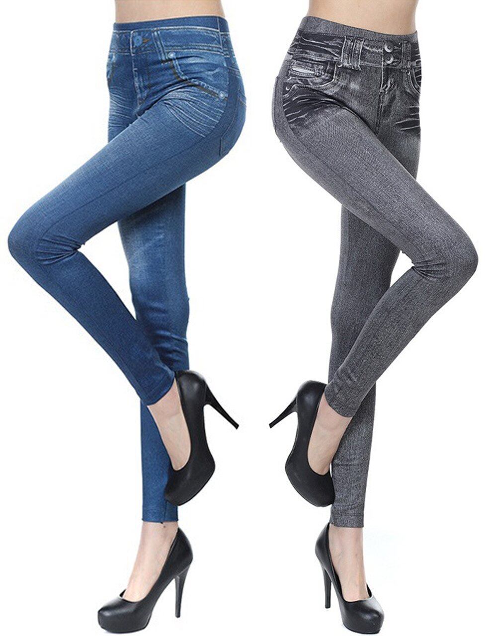 [ロージ-] 2色セット デニム風 美脚 レギンス パンツ スパッツ ストレッチ レディース レギパン スキニー