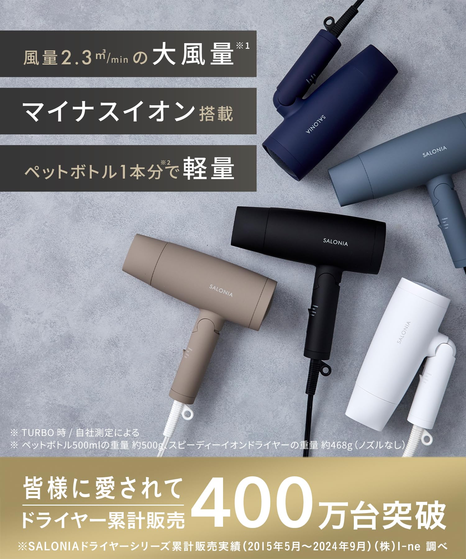 SALONIA サロニア スピーディーイオン ドライヤー 大風量 速乾 軽量 マイナスイオン ヘアドライヤー SL-013BK ブラック