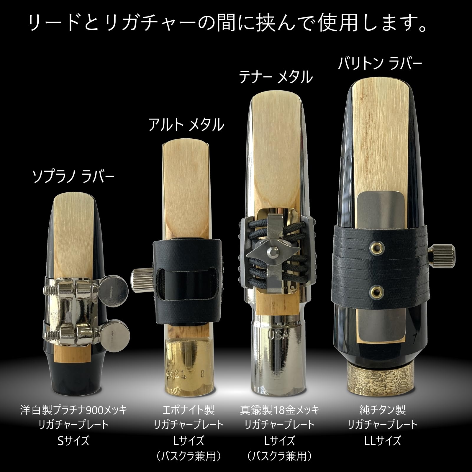 【使用方法】リードとリガチャーの間にプレートを挟んで使用します。リガチャープレートを使用することによって、音に様々な効果が生まれ、サックスを演奏する楽しさが倍増します。※プレートを挟むことでリガチャーの装着感が若干変わります。リガチャーは合うものをご使用ください。