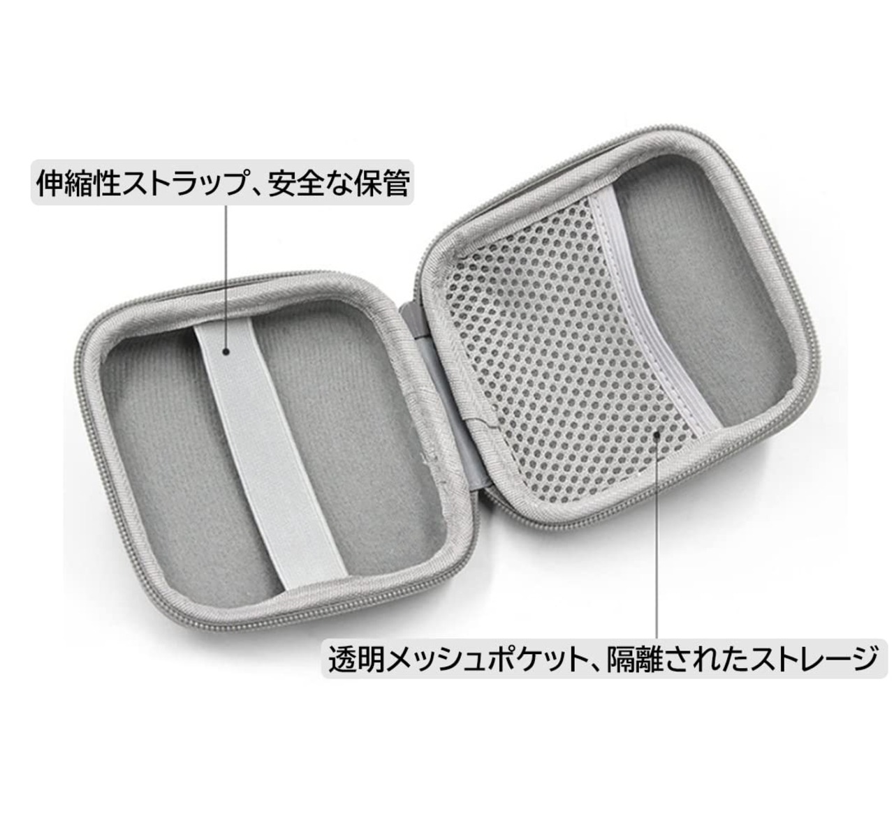 【優れ材質】収納ポーチバッグは、耐衝撃性、耐圧縮性、耐久性に優れたEVA素材で作られています。 透明なメッシュバッグを内蔵しているので、一目でわかりやすく収納できます。内側は厚手のフリース素材で、伸縮性のあるストラップが固定されているので、電源をしっかり保護して安定して収納できます。 耐久性の良いなジッパーは繰り返し使用しても壊れることはなく、開閉も非常にスムーズでアクセスと管理が簡単です。