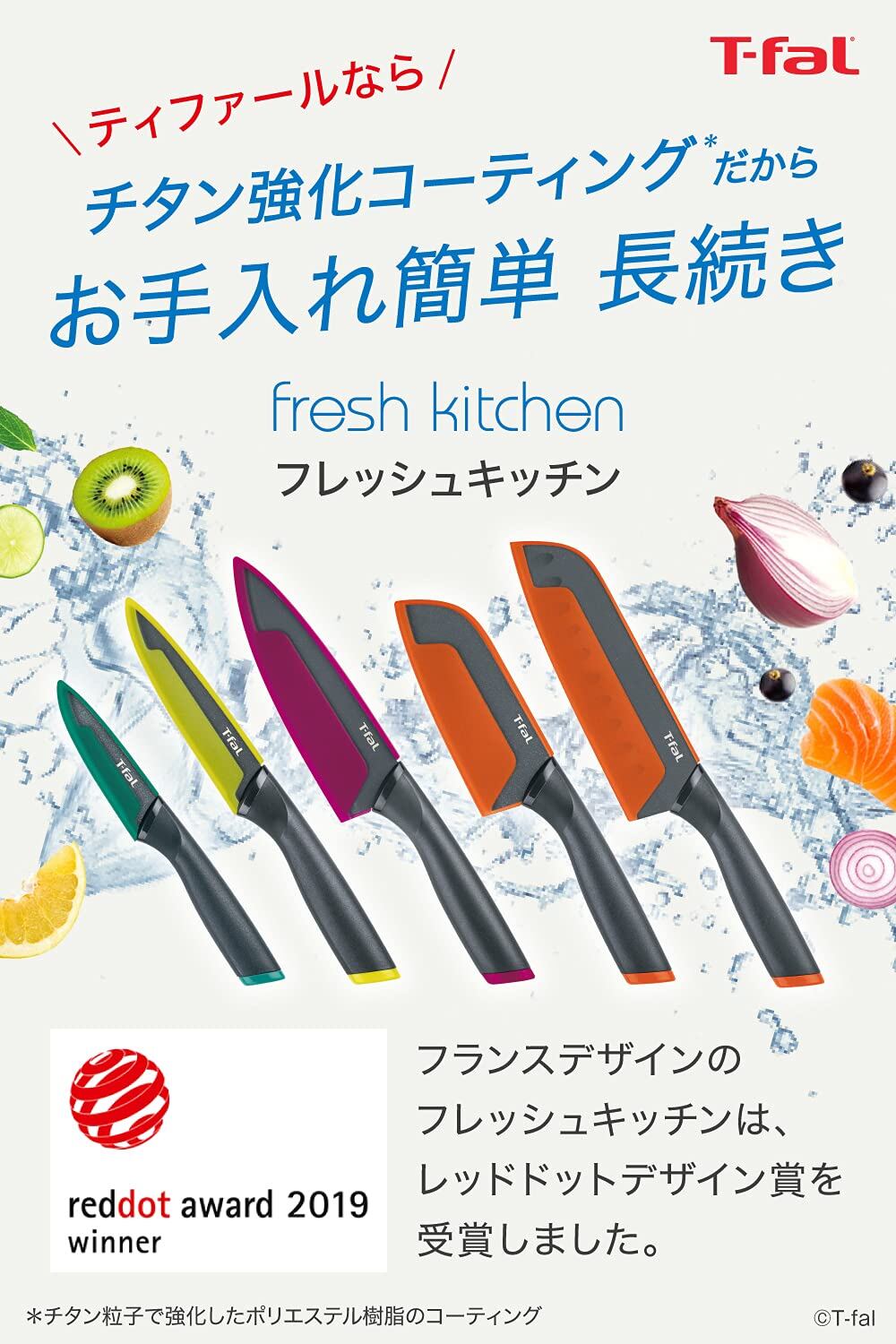 ティファール 牛刀包丁 チタン強化コーティング 15cm チタン強化コーティング エラストマー素材 握りやすい 「フレッシュキッチン シェフナイフ」 保護カバー付き K13403