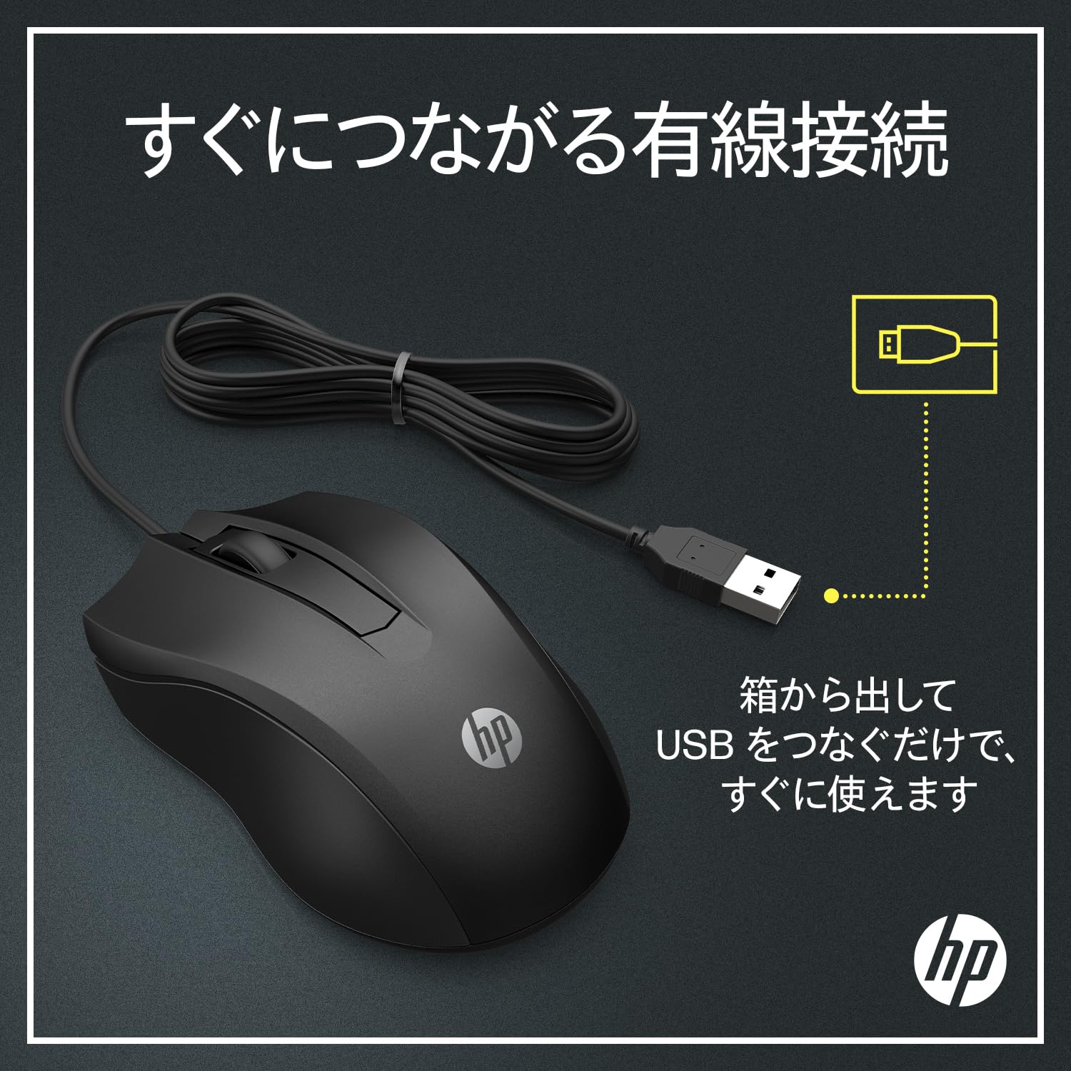 ヒューレット・パッカード(HP) HP 100G 有線 マウス 光学式 1600dpi USB 黒 ブラック【国内正規品】