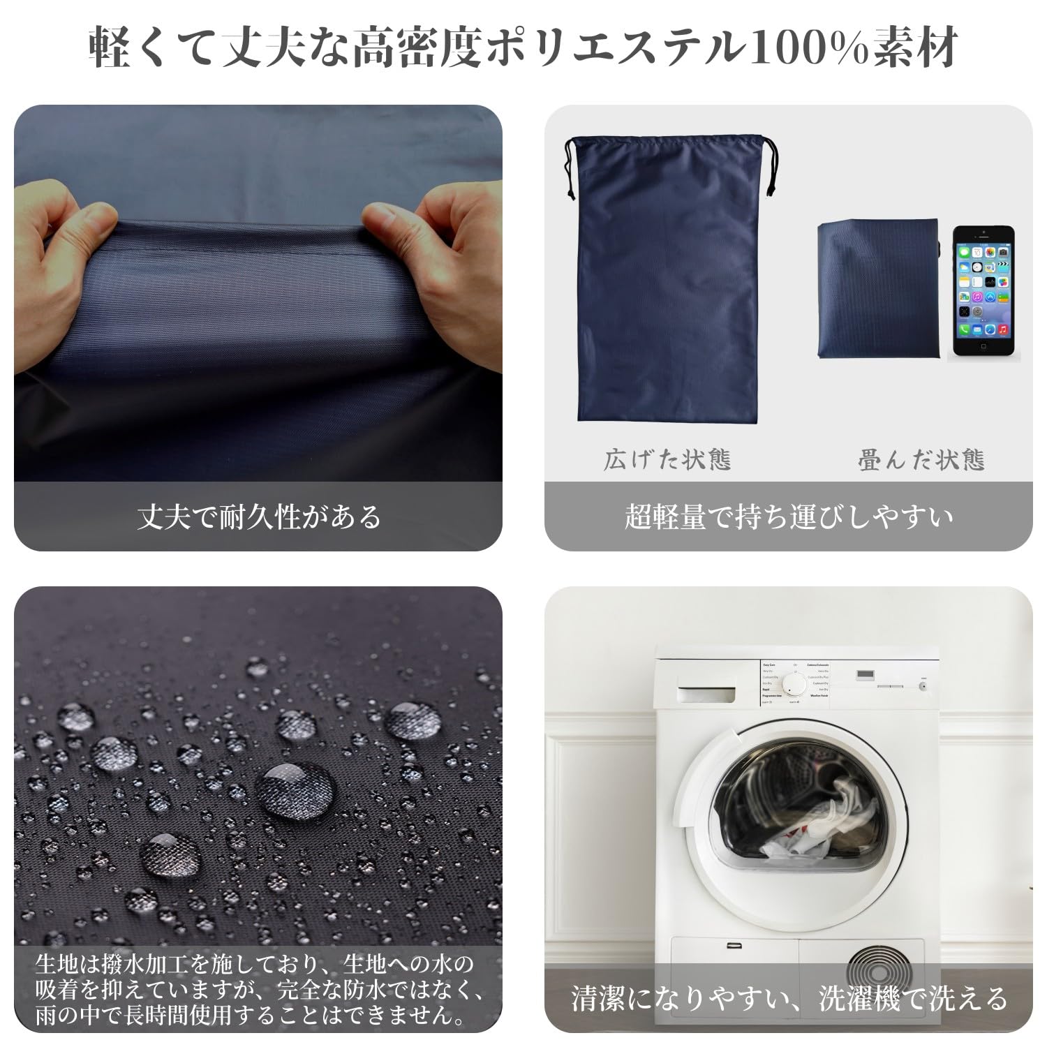 【巾着タイプで使いやすい】巾着付きで、軽く引くだけで閉じたり、開いたりすることができ、使いやすいです。生地は汚れがつきにくく、お手入れも簡単で洗濯機で洗えます。