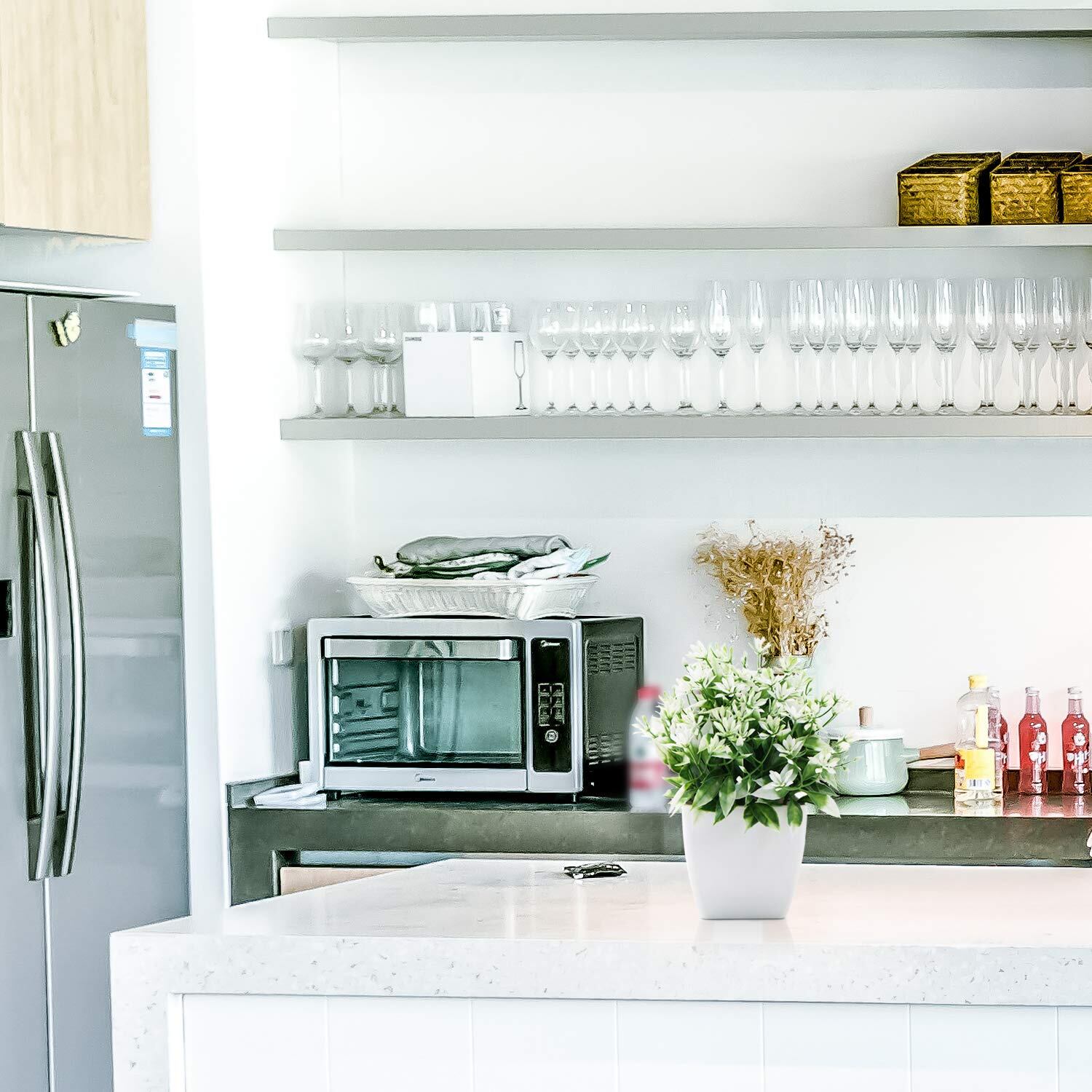 TOSSOW 人工観葉植物 造花 フェイクグリーン フェイク観葉植物 四方鉢 インテリア プレゼント 緑と白い葉