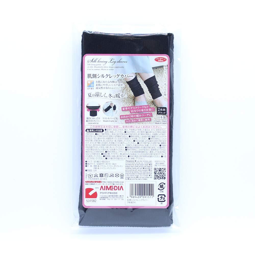 アイメディア レッグカバー シルク 絹 2枚組 レディース 日本製 薄手 夏冬兼用 足首ウォーマー レッグウエア アームウォーマー 肌側シルクレッグカバー ブラック 横9.5X長さ20cm