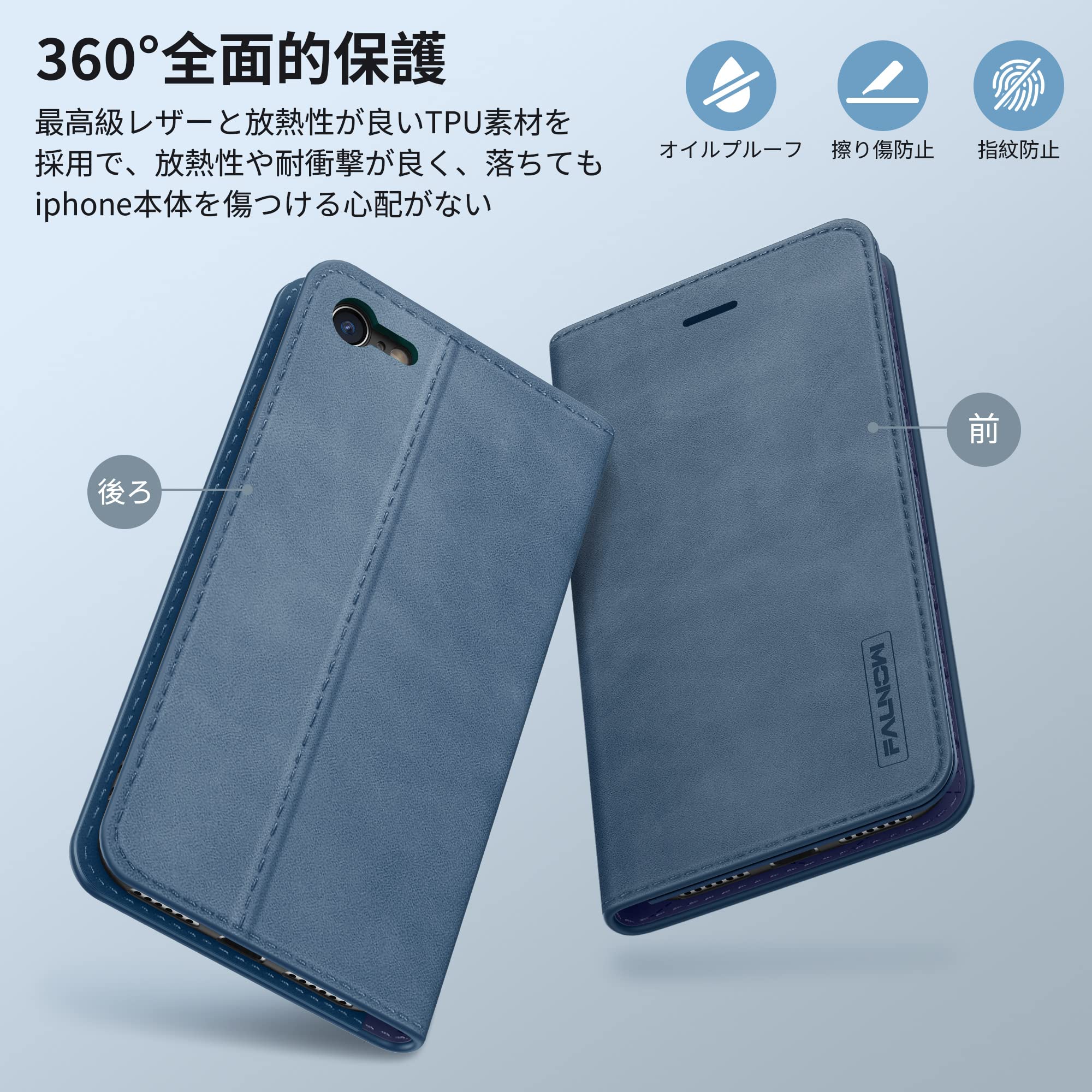 【全面保護&耐衝撃性アップ】iPhone7 iphone8 ケース 手帳型は最高級レザーと放熱性が良いTPU素材を採用ので、放熱性や耐衝撃が良く、落ちてもiphone本体を傷つける心配がない。手帳型ならではの全面保護機能でディスプレイはもちろん、背面もしっかりガードして、損傷することなく数年間使用できます。