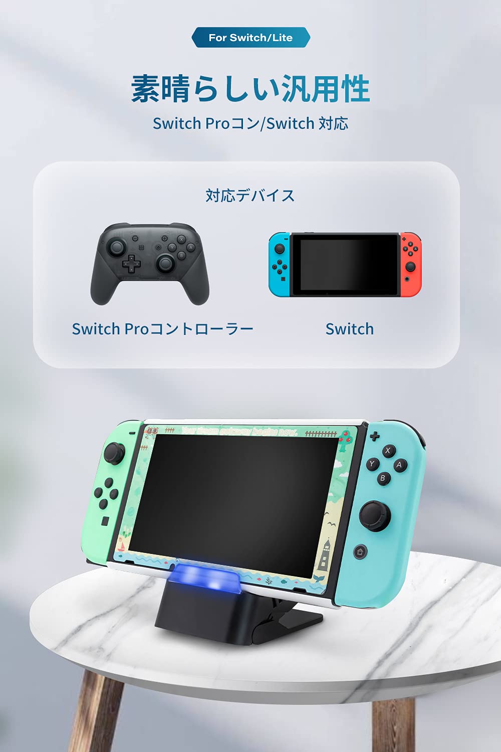 【純正ドックのお代わり】純正ドックのサイズ:10.2*5*17.2、重さ:292g。ミニドックサイズ:7*5*9.5cm、重さ:80g。任天堂スイッチドックは大きい過ぎる、外出など持っては不便です。このミニドックは純正ドックを置き換えるために特別に設計、サイズも半分ぐらい小さいし、純正ドックの機能も全部揃えました。これ1つあれば重たい純正ドックから解放されます。普段使いはもちろん、旅行や出張先にも自由に持ち運び、どこでも簡単に遊べます。