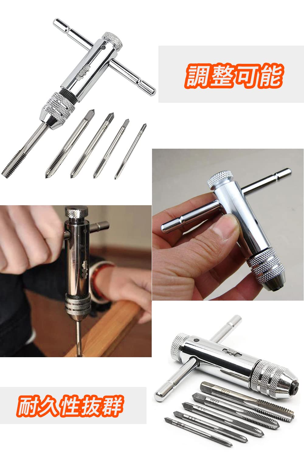 LIKENNY ねじタップ ラチェット タップホルダー T型 ハンドル タップレンチ 接続 タップハンドル 工具 セット 穴あけ 調整可能 M3 M4 M5 M6 M8 ねじ切りタッピングハンド ハンドタッピング作業用