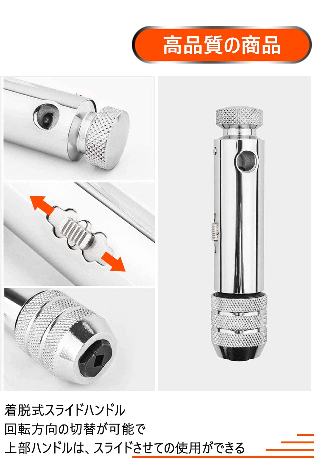 【商品の仕様】タップモデル:M3×0.5mm、M4×0.7mm、M5×0.8mm、M6×1.0mm、M8×1.2mm着脱式スライドハンドル。適用タップ寸法:M3-M8。製品は手動測定であり、0.00~0.05mmの誤差がある可能性があります。