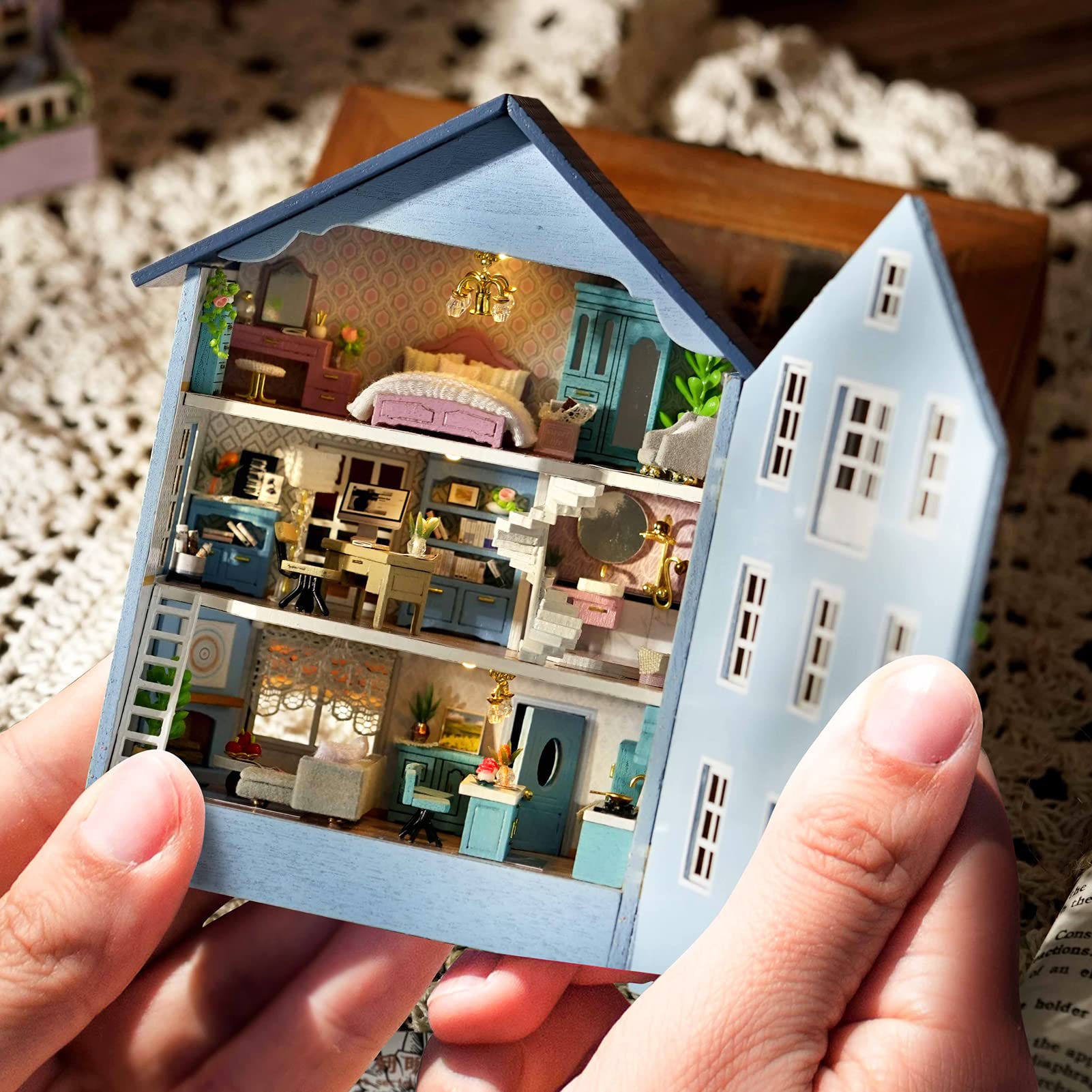 【DIYミニチュアドールハウスキット-手作りコレクションと室内装飾】ドールハウスは自分で組み立てる必要があります。14年以上に渡って適したパーツをお送りします。このドールハウスキットは、芸術品や工芸品に夢中になります。 初心者の方でも、手作業で少しずつ進んでください。それほど難しくはありません。 あなたは自分自身に計画を立て、それを組み立てるために1日何時間も費やすことができ、良い習慣を身につけるだけでなく、サプライズハウスを作ることもでき、あなたは素晴らしい充実感を得るでしょう!