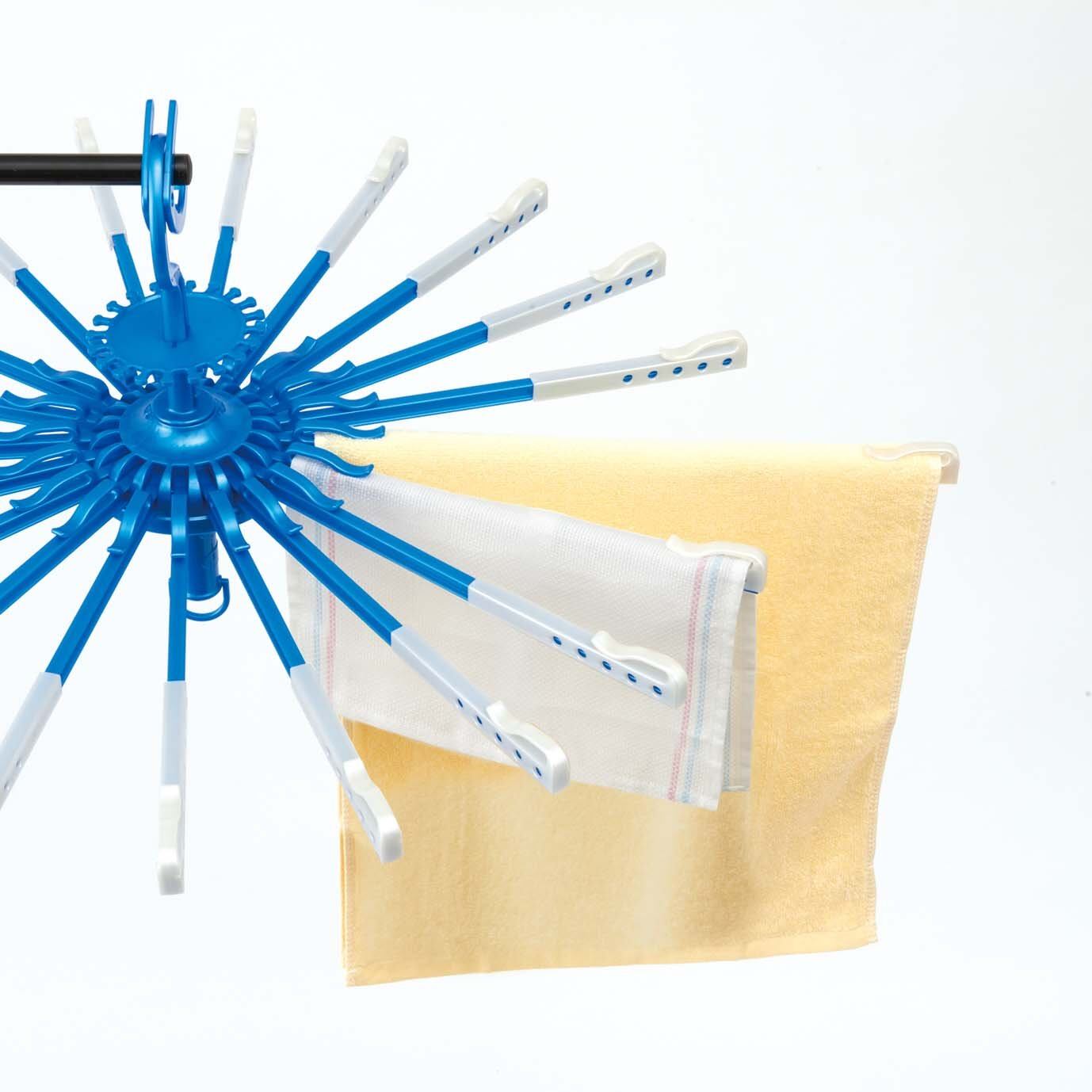 オーエ ポリプロピレン 洗濯 物干し パラソルハンガー ブルー 縦31×横64×高さ64cm 20本掛け LD 伸びる 洗濯物の大きさにあわせてアームの伸縮が可能