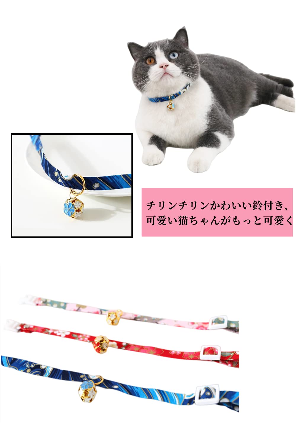 猫首輪 3個セット 猫セーフティバックル 安全 ペット用首輪 鈴付き 長さ調節可能 軽量