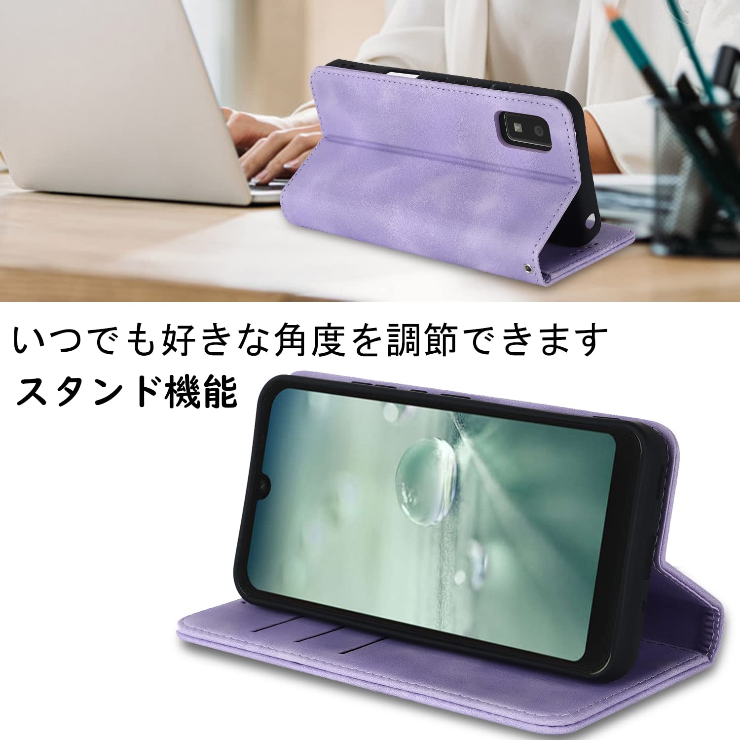 【横置きスタンド機能】横置きスタンド機能が付きまして、好きな角度を調節です。映画を見たり読んだりすることで手を解放できます。携帯電話ケースのアップグレードでは、側面にストラップが追加され、脱落することなく手に掛けることができます。
