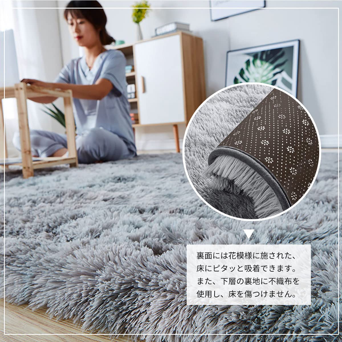 【滑り止め加工・防音遮音】裏面には強力な滑り止め加工を施しました。ラグがズレにくいので、子どもが走っても安心です。裏面にも不織布を使用しているので、フローリングを傷つけません。また音や衝撃をしっかりと吸収でき、床に敷くだけで防音効果ができます。