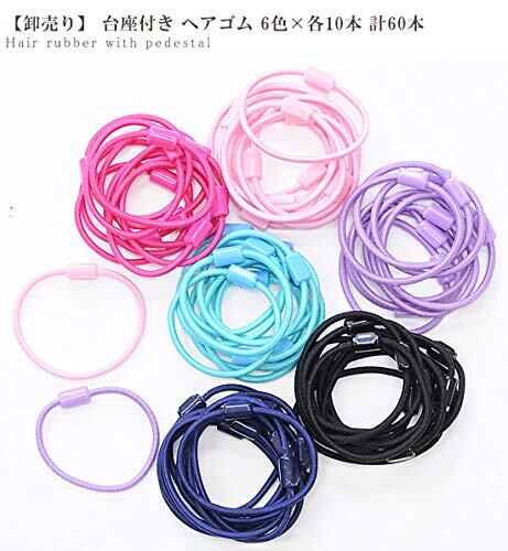 MYmama 台座付き ヘアゴム ヘアアクセ パーツ ハンドメイド (ミックス60本(6色×各10本))