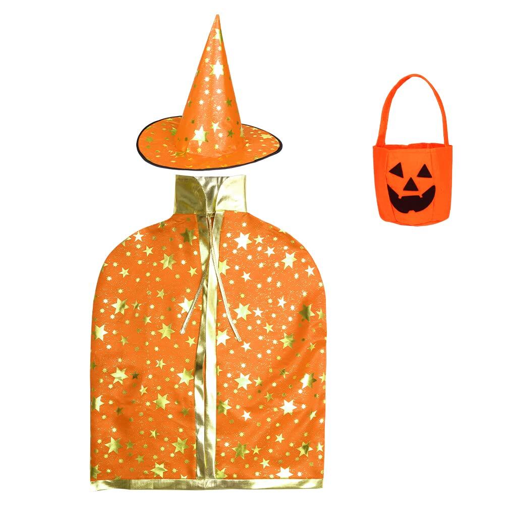 【セット内容】豪華3点セット:星柄マント+とんがり帽子+カボチャバッグ フリーサイズ:ワンサイズマント 着丈:約80cm 対応可能な身長:推奨の子供の身長は80-140cmとなります。