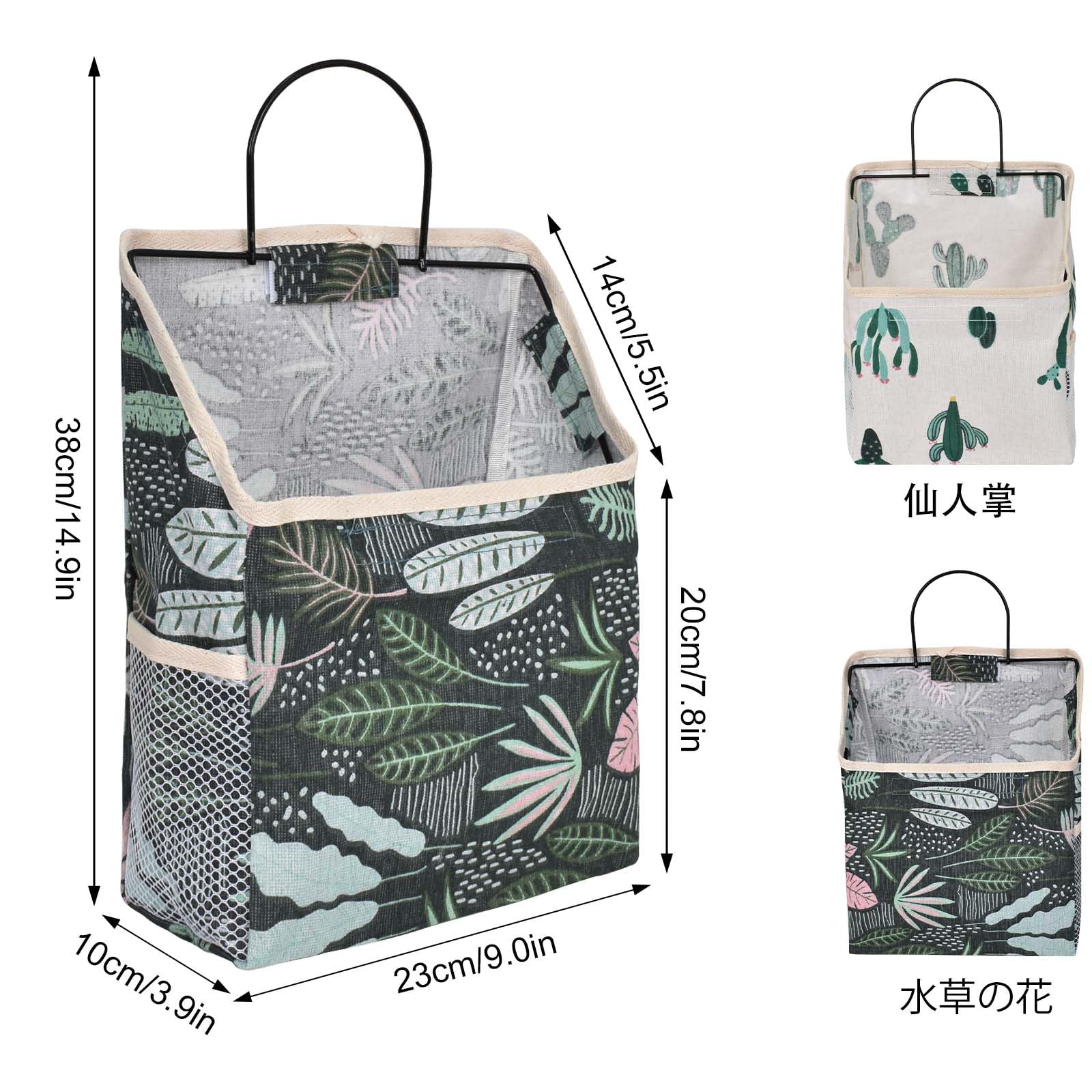 ウォールポケット 壁掛け 収納 壁掛けバッグ フック付き 収納バスケット 布製 金属フレーム付き 2個 ドア 収納 吊り下げ ポケット おもちゃ、衣類、本、雑誌、封筒、スナックの収納 (サボテン柄、植物柄)