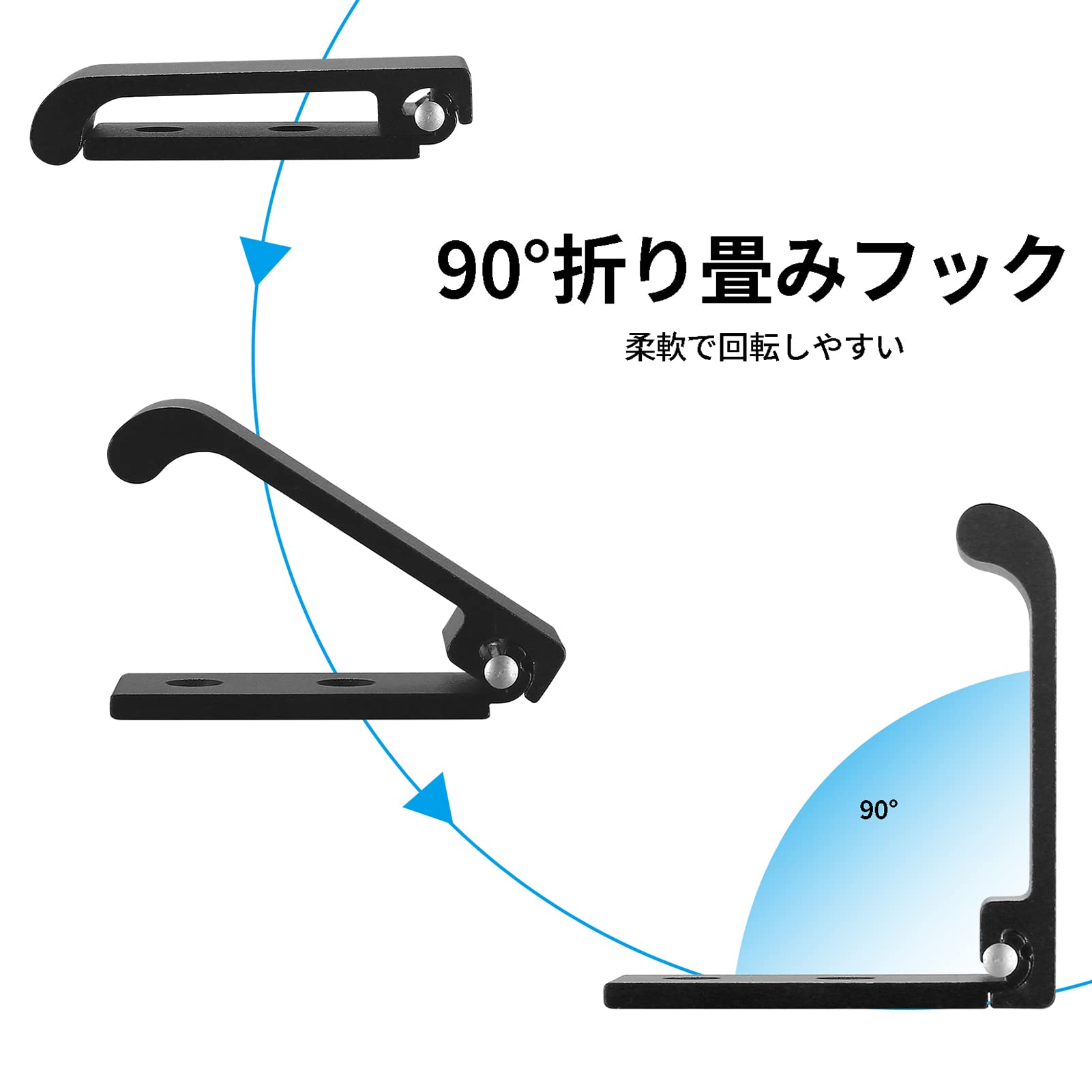 90° 折りたたみ式デザイン: 90° 折りたたみ式デザインで、簡単に折りたたむことができ、使用しないときはスペースを節約でき、衝突しにくいです。 折りたたみフックの先端を高くして物が落ちにくく、人間味のあるデザインです。