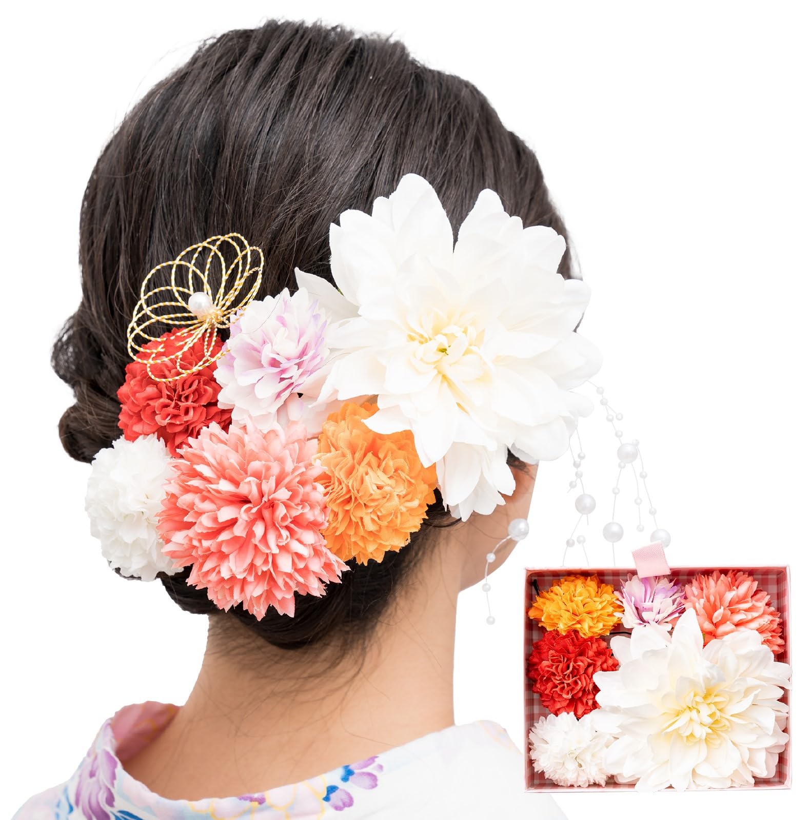 【ヨシツヤマ】 和装 髪飾り 和服髪飾り 浴衣 成人式 振袖 卒業式 造花 組合せ自由 選べる6色 (白)