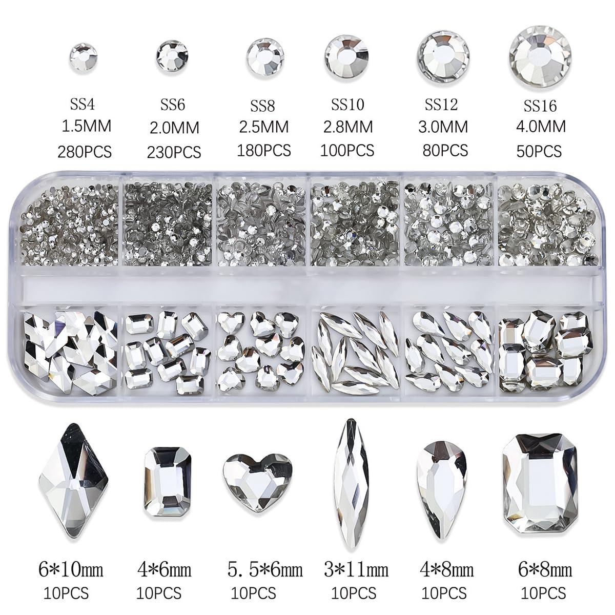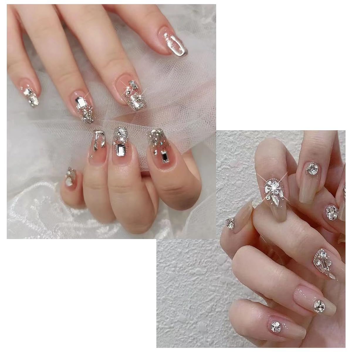 数は多く、約900〜1000個です。形はひし形、四角形、円形、ハート型などさまざまです。サイズは1.5 mm〜10 mmまでさまざまです。さまざまなネイル装飾のニーズに対応します。初心者には簡単に貼ることができ、一番人気のデザイン、とても可愛くてファションです。