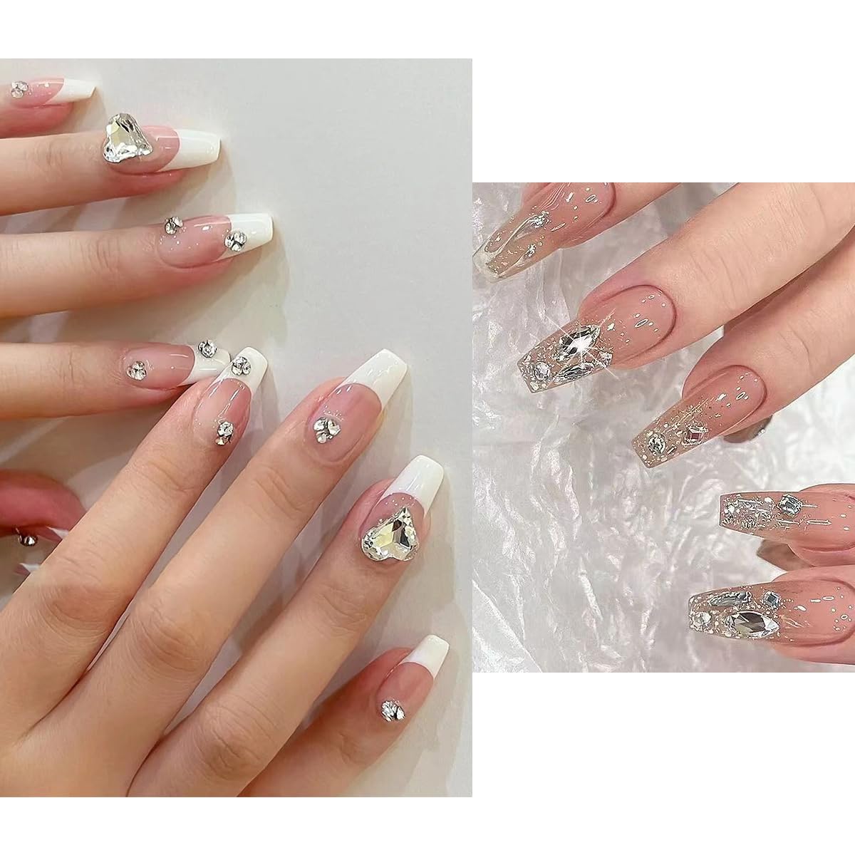 ラインストーン ネイルストーン ネイルパーツ ストーン ネイル用ストーン 立体 平底 ひし形 ハート 長方形 丸 ネイルアートパーツ クリスタル AB ラインストーン (白い)