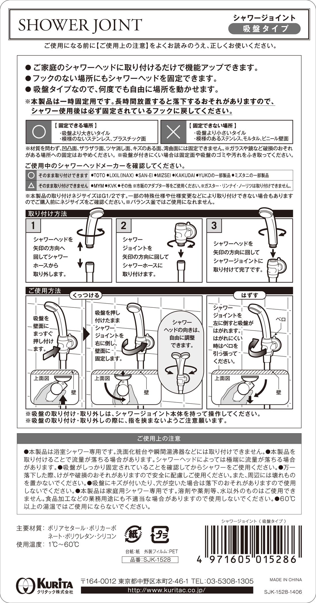 クリタック(Kurita) シャワーヘッド シャワージョイント 首振りタイプ SJSW-1529 4.1×4.1×6.1cm ホワイト