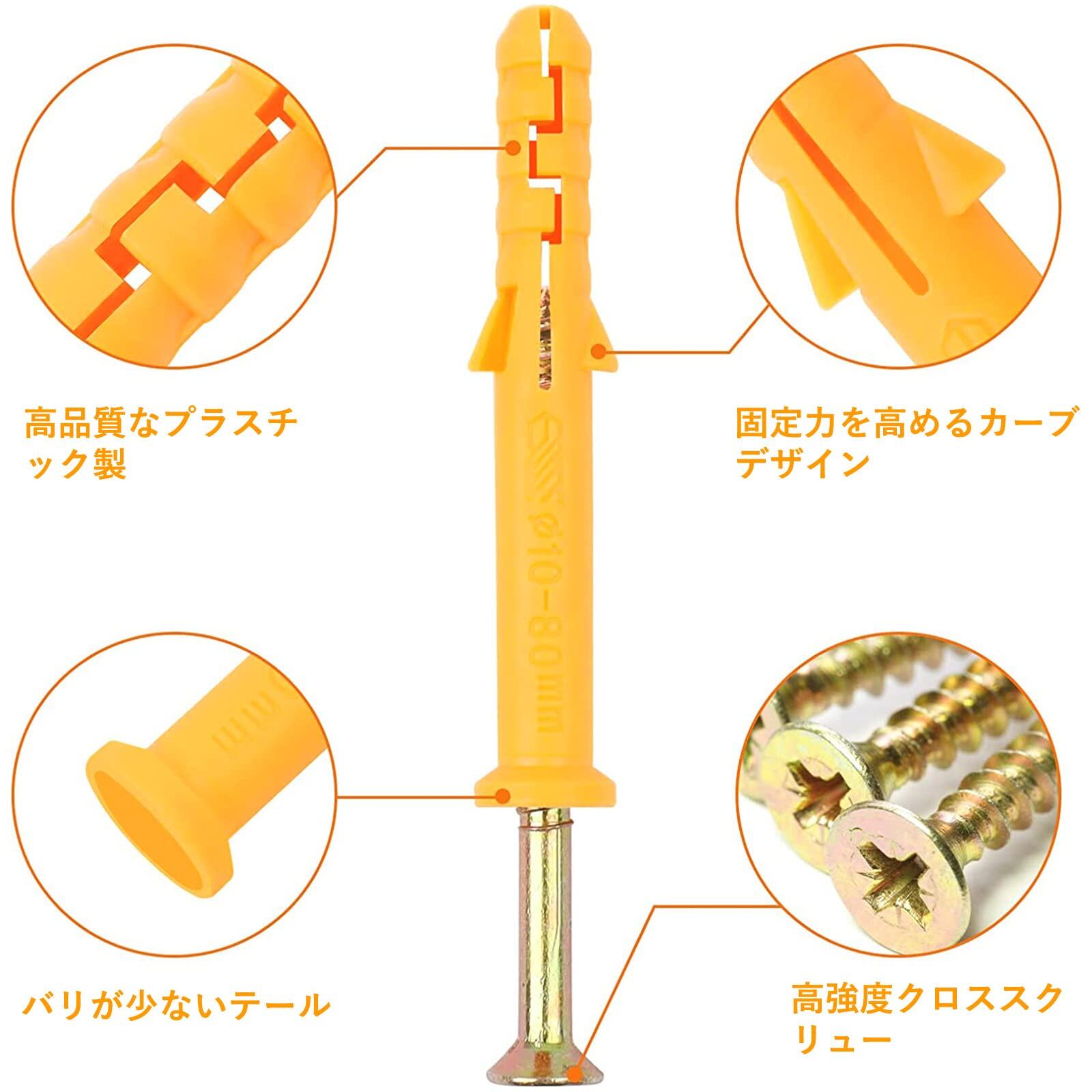 【セット内容】合計88pcs。拡張ウォールプラグアンカー44個、セルフタッピングネジ44個入り。 収納ボックス付き。