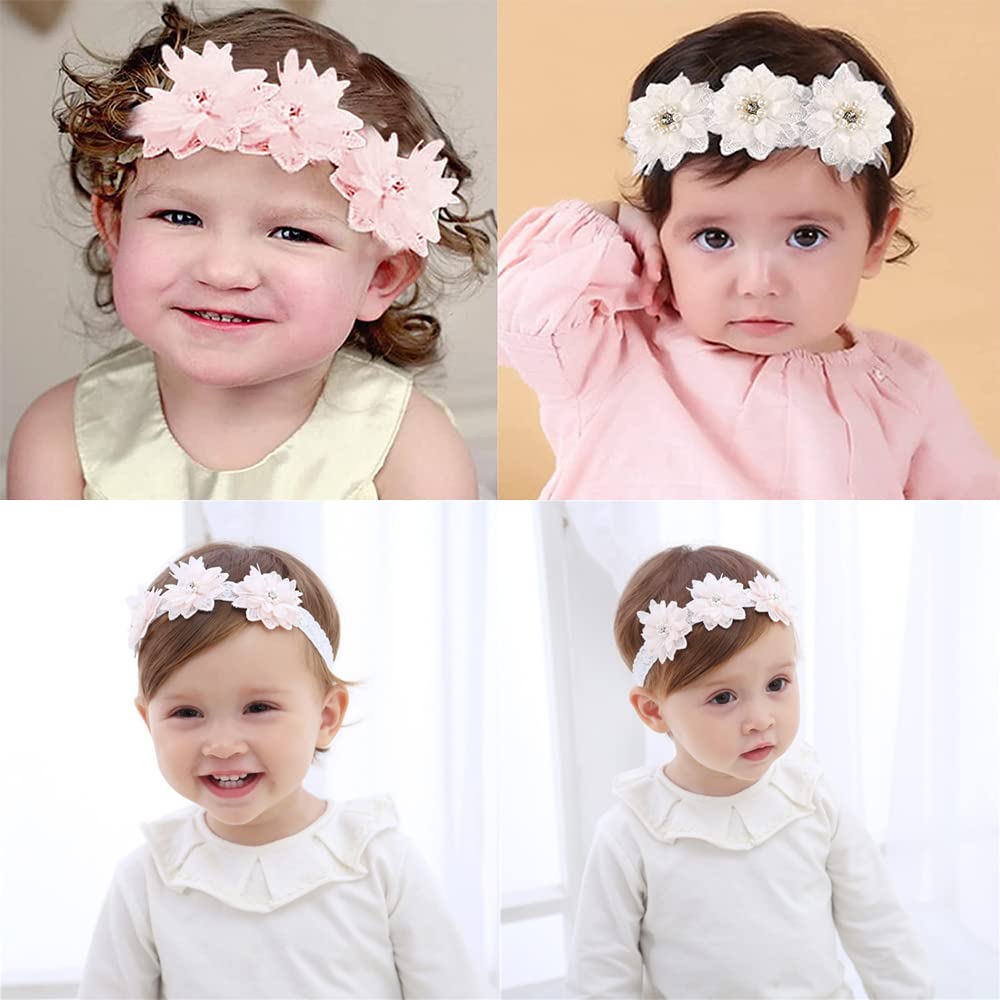 DFsucces ベビー ヘアバンド 女の子 赤ちゃん 子供 髪飾りお花 ヘアアクセサリー かわいい おしゃれ ベビーヘアバンド ヘッドバンド レースバンド お祝い 記念日 誕生日 撮影 出産祝い 3点セット (スタイルA)