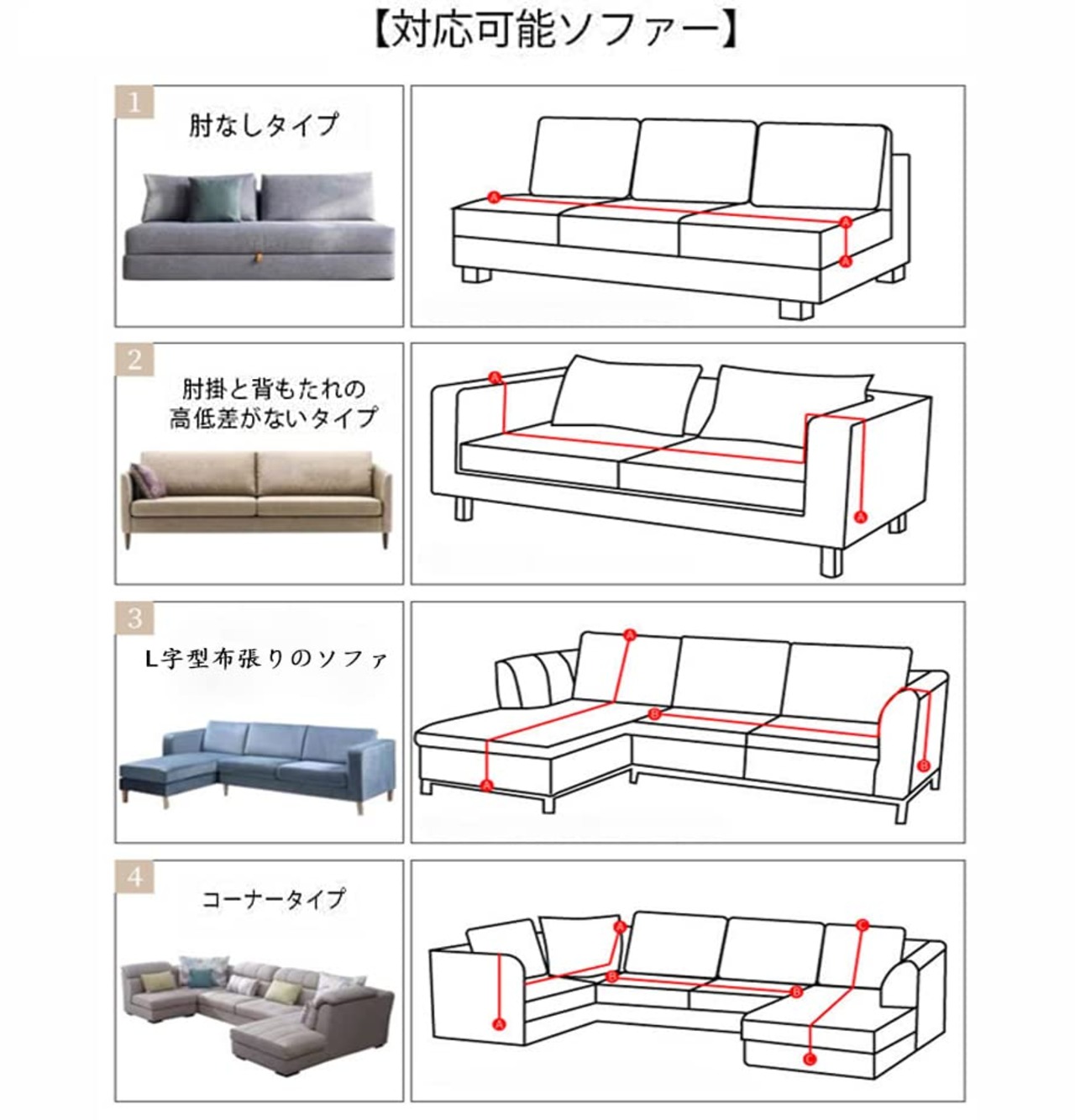 【完璧なサイズ】:180*130cm(1/2人掛けソファーに適用) 180*240cm(2/3人掛けソファーに適用) 180*300cm(3/4人掛けソファーに適用) 。このようなラブシート、断面ソファ、L字型ソファ、アームレスソファ、布団ソファ、通常のソファなど、様々なソファに適合します。(注意:詳細な測定のためのサイズ画像を参照してください。購入する前に、必ずソファーのサイズを測ってください。)