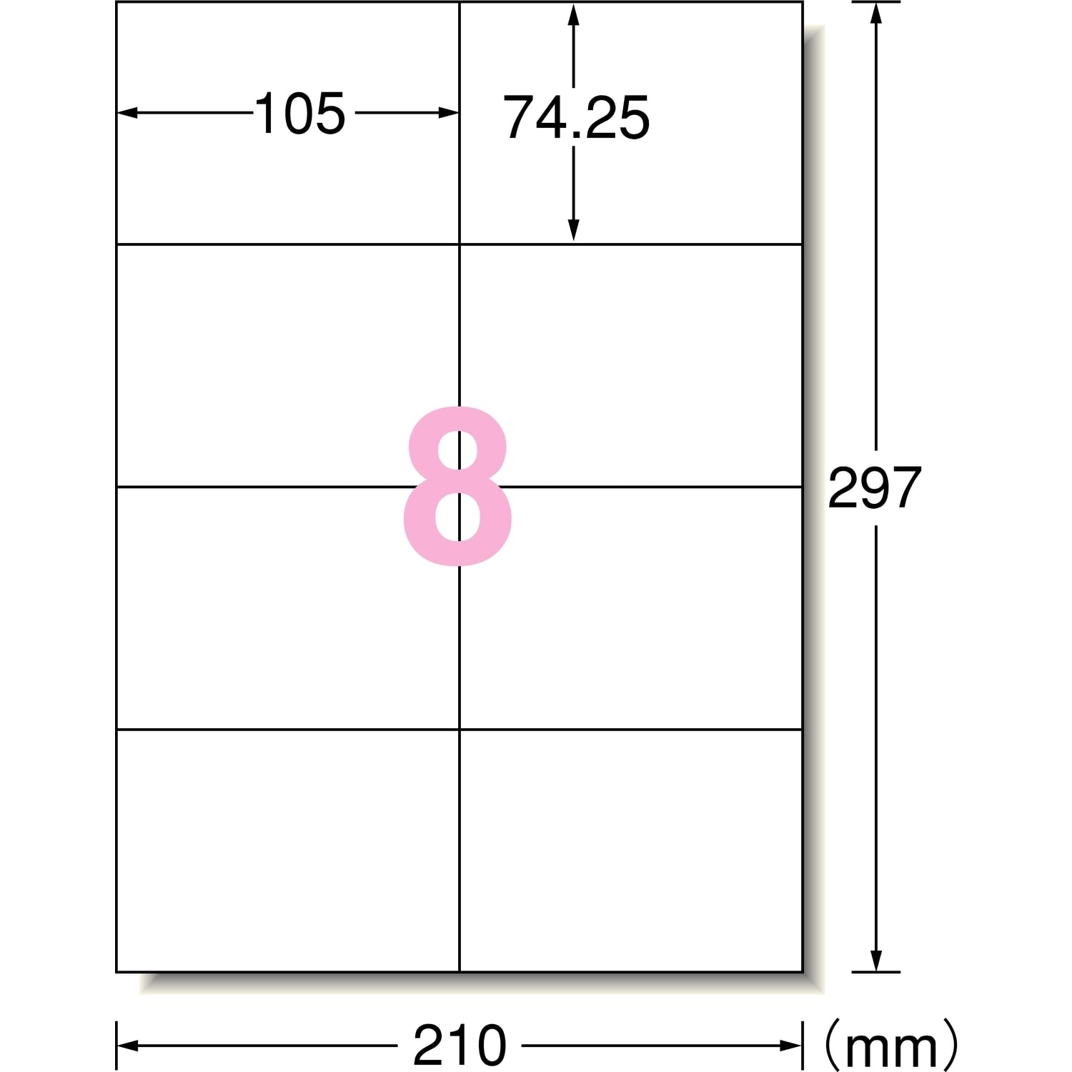 A4 8面/シートサイズ:A4判(210mm×297mm)/ラベルサイズ:105mm×74.25mm(2列×4段)