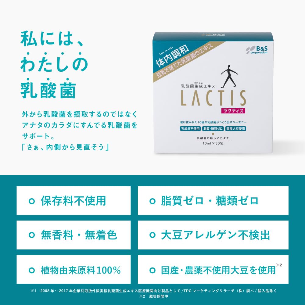 「ラクティス(Lactis)」は、大正3年創業、日本初のヨーグルト製造販売を開始した(株)ビーアンドエス・コーポレーションが製造・販売する乳酸菌生成エキスサプリメントです。 アンチドーピング認証プログラム「インフォームドチョイス」を取得しており、多くのアスリートの方々やペットまで安心してお飲みいただけます。