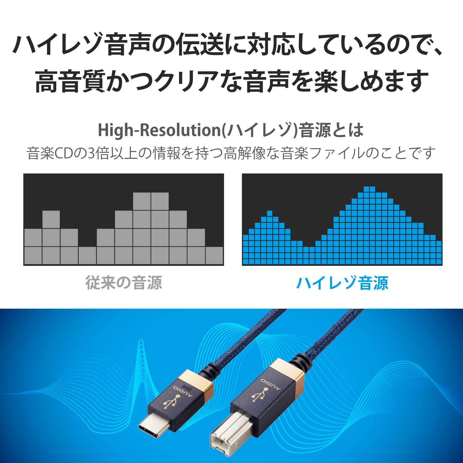 エレコム USB ケーブル オーディオ用 変換 [ タイプC & タイプB ] USB2.0 USB-C 音楽伝送 OTG ハイレゾ音声 ナイロンメッシュ 1m ネイビー 【 DAC アンプ オーディオインターフェイスなどに対応 】 【iPhone 16 シリーズ 対応検証済】 DH-CB10