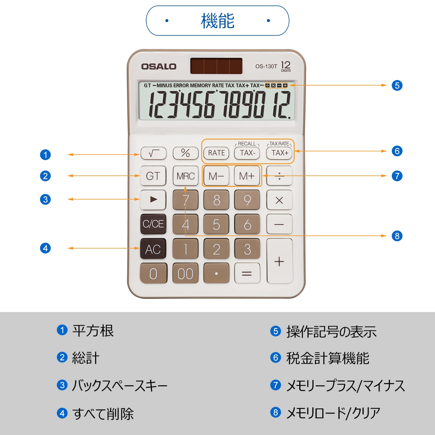 pendancy 卓上電卓 大型LCDディスプレイ 12桁 数字ビッグボタン 税金会計計算機 電池式 太陽光発電 デスク オフィス 自宅 ビジネス用 (OS-130T ブラウン)