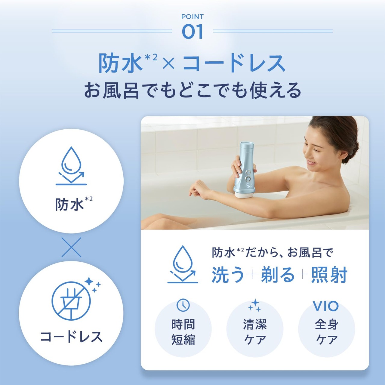 エステサロンで一般的に使用されるIPL方式を取り入れ、ムダ毛ケア。継続して使用することでムダ毛が目立ちにくく、毛穴が気にならない肌に。