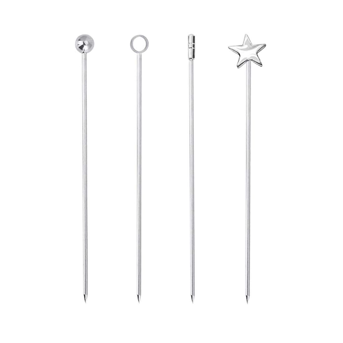 20本のカクテルスティックセットステンレススチールフルーツスティック、再利用可能なドリンクピック前菜つまようじマティーニグラスピック、4スタイル