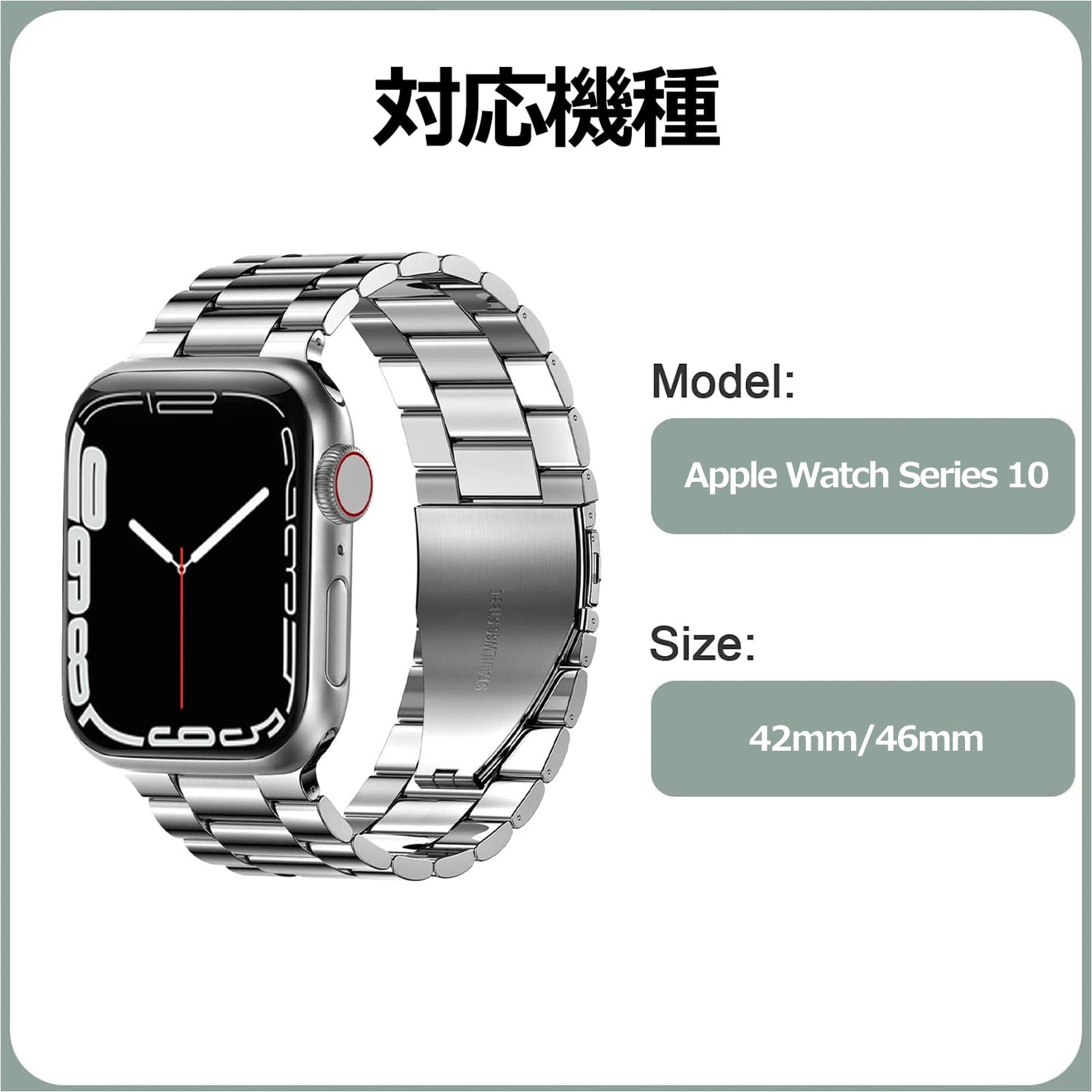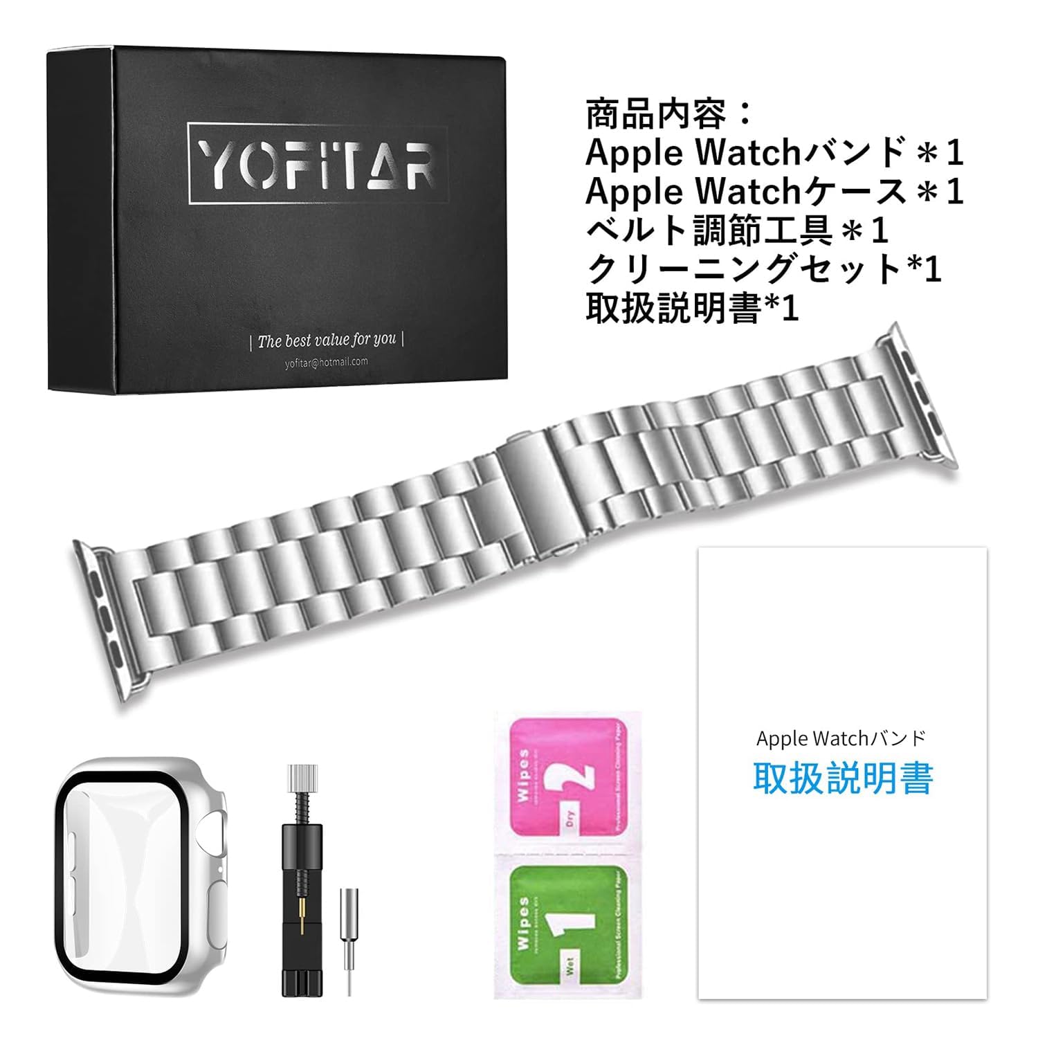 [YOFITAR] for Apple Watch バンド 保護ケース付き ステンレス製 アップルウォッチ 交換ベルト Apple Watch series10 42mm対応 iWatch バンド Apple Watchアクセサリ 長さ調整器具付き(42mm,シルバー)