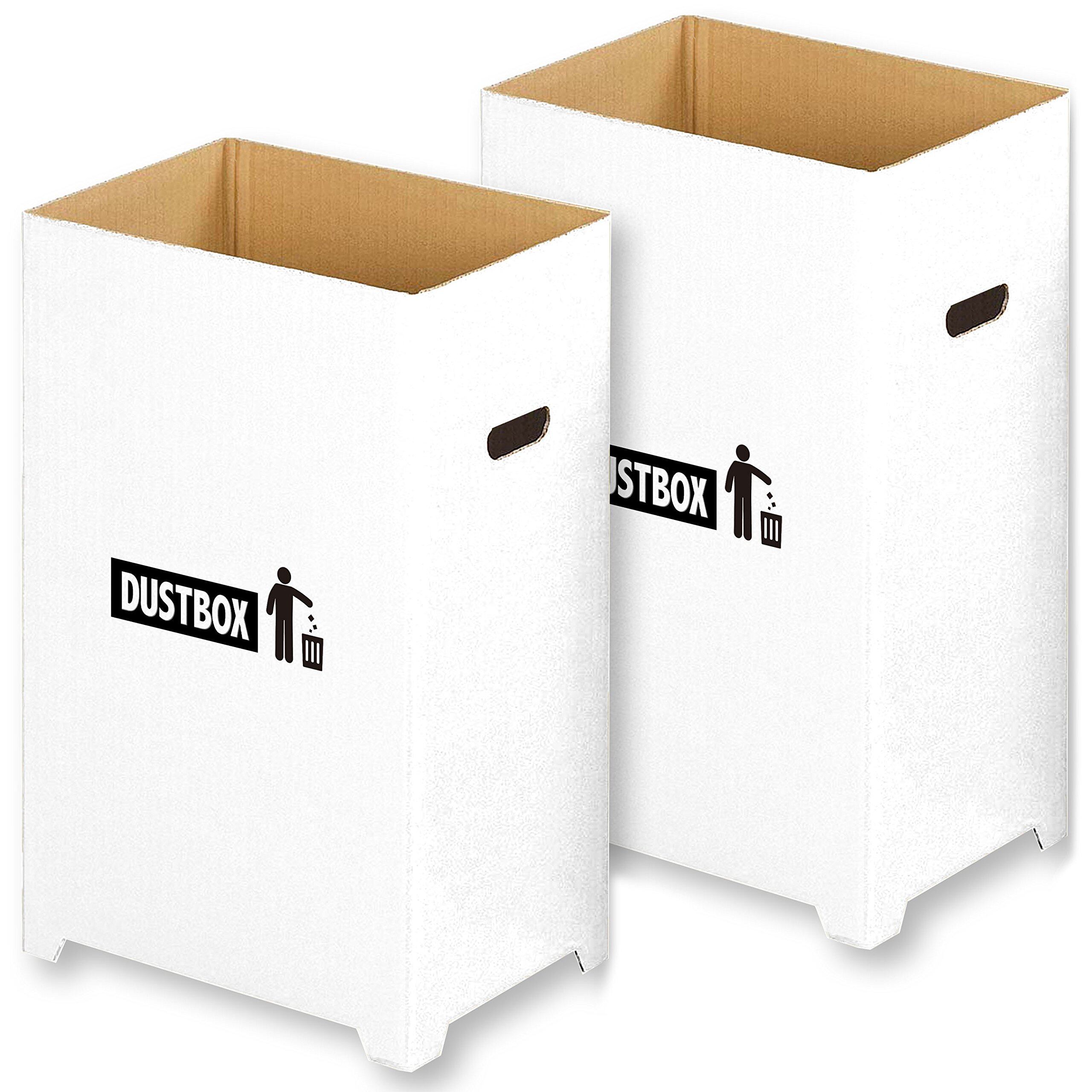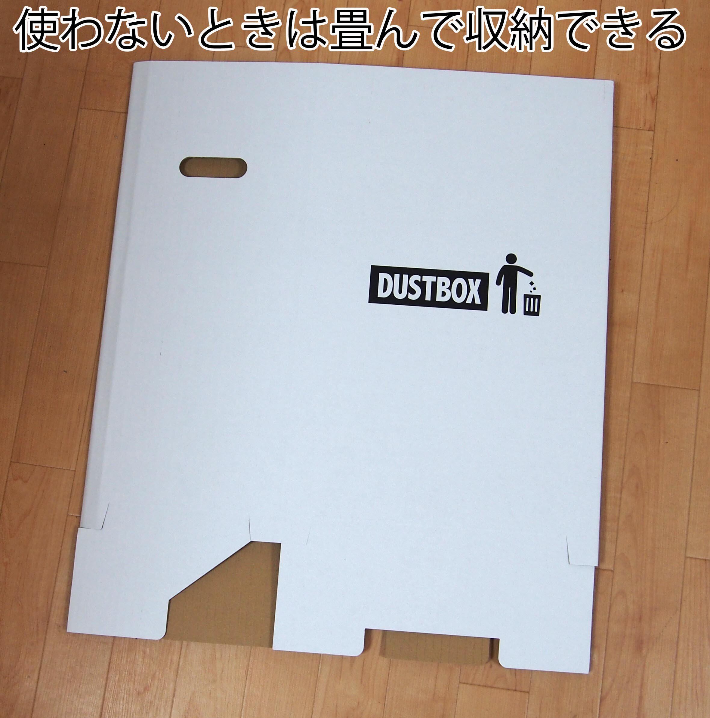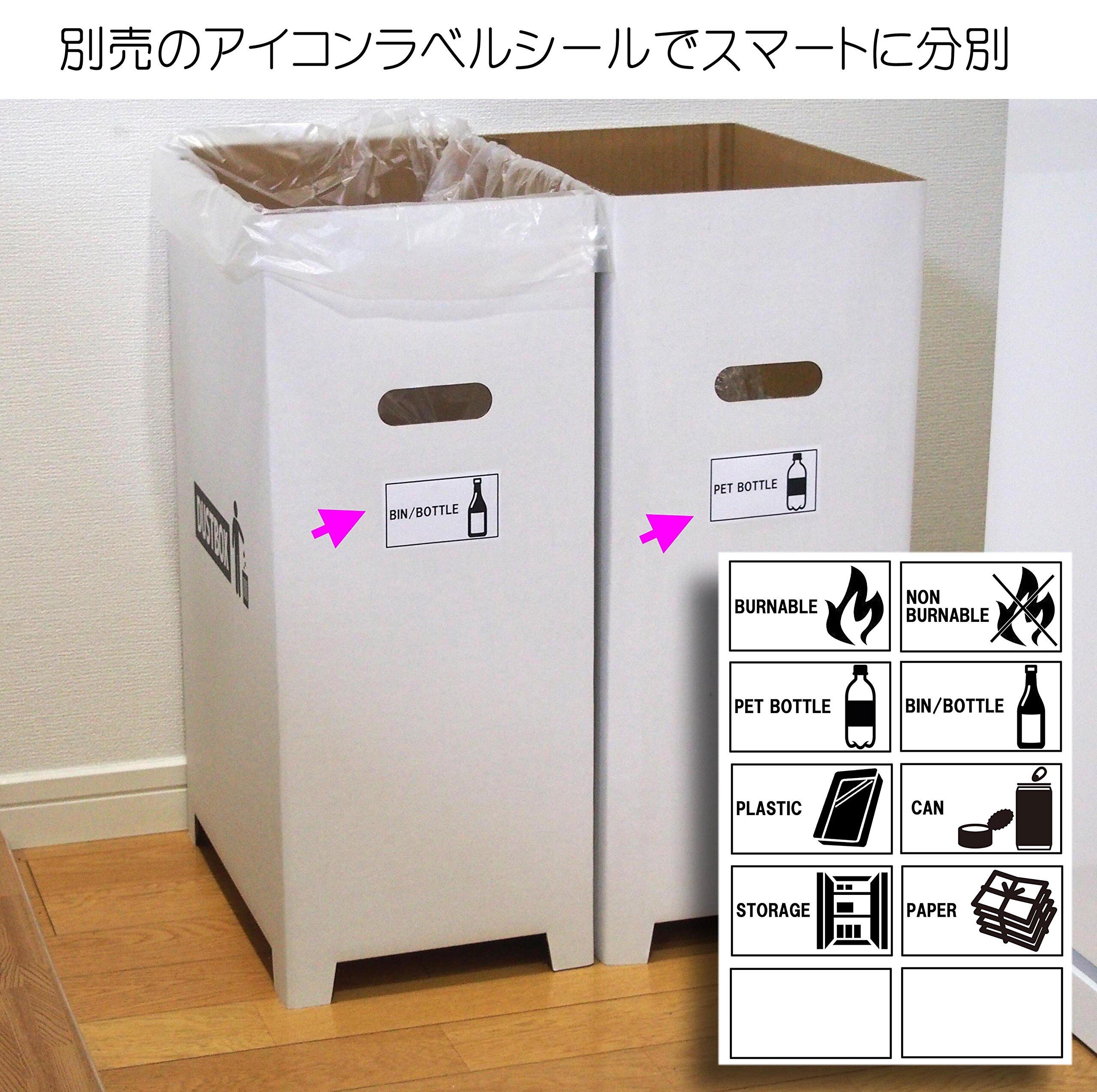 でしか買えない【限定】オシャレな ダンボール ゴミ箱。白地に黒の DUSTBOX とかわいいアイコンがプリント。パット見はダンボールに見えないオシャレさがGOOD。並べて分別。ペットボトル、空缶入れ専用ゴミ箱などとして活躍。 専用 分別シールもあり、用途に合わせて分別